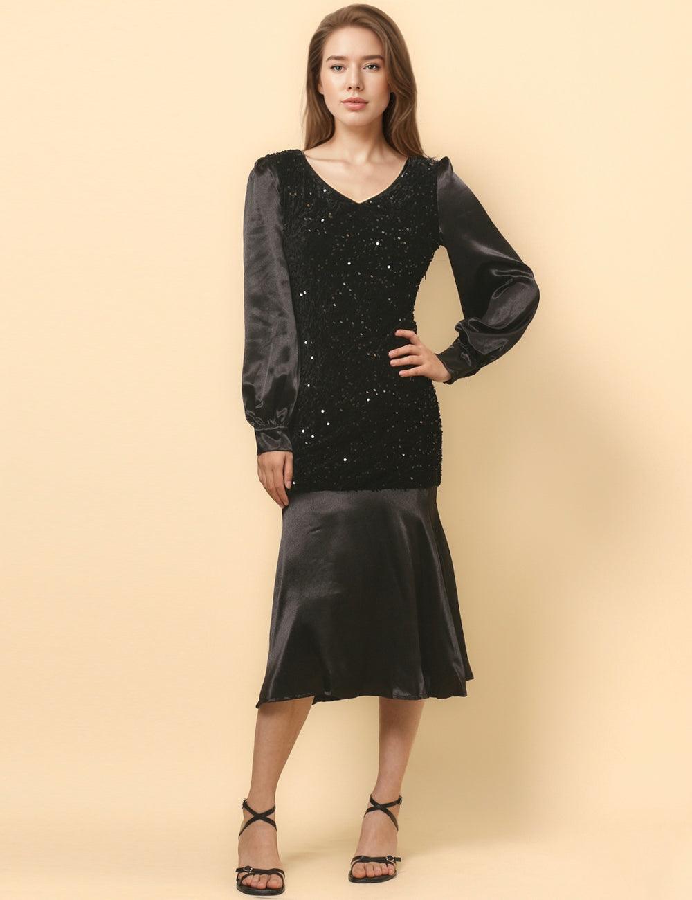 Ladies Holiday Shiny Sequin Night Our Party Midi Dress SKD4733