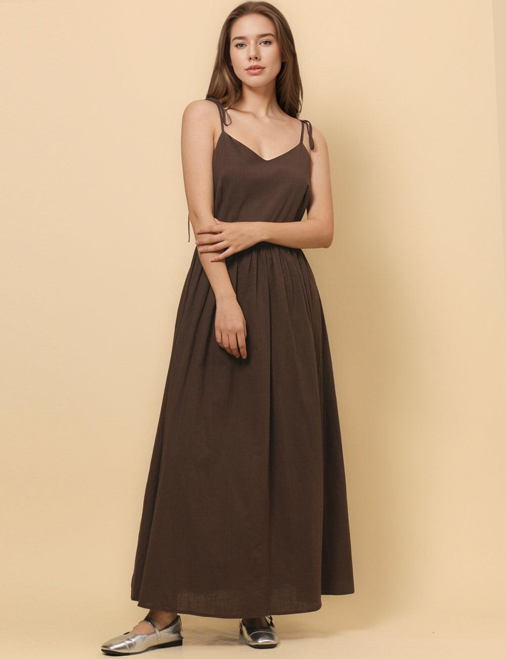 Ladies V-Neck String Tie Sleeveless Midi Dresses SKD4786