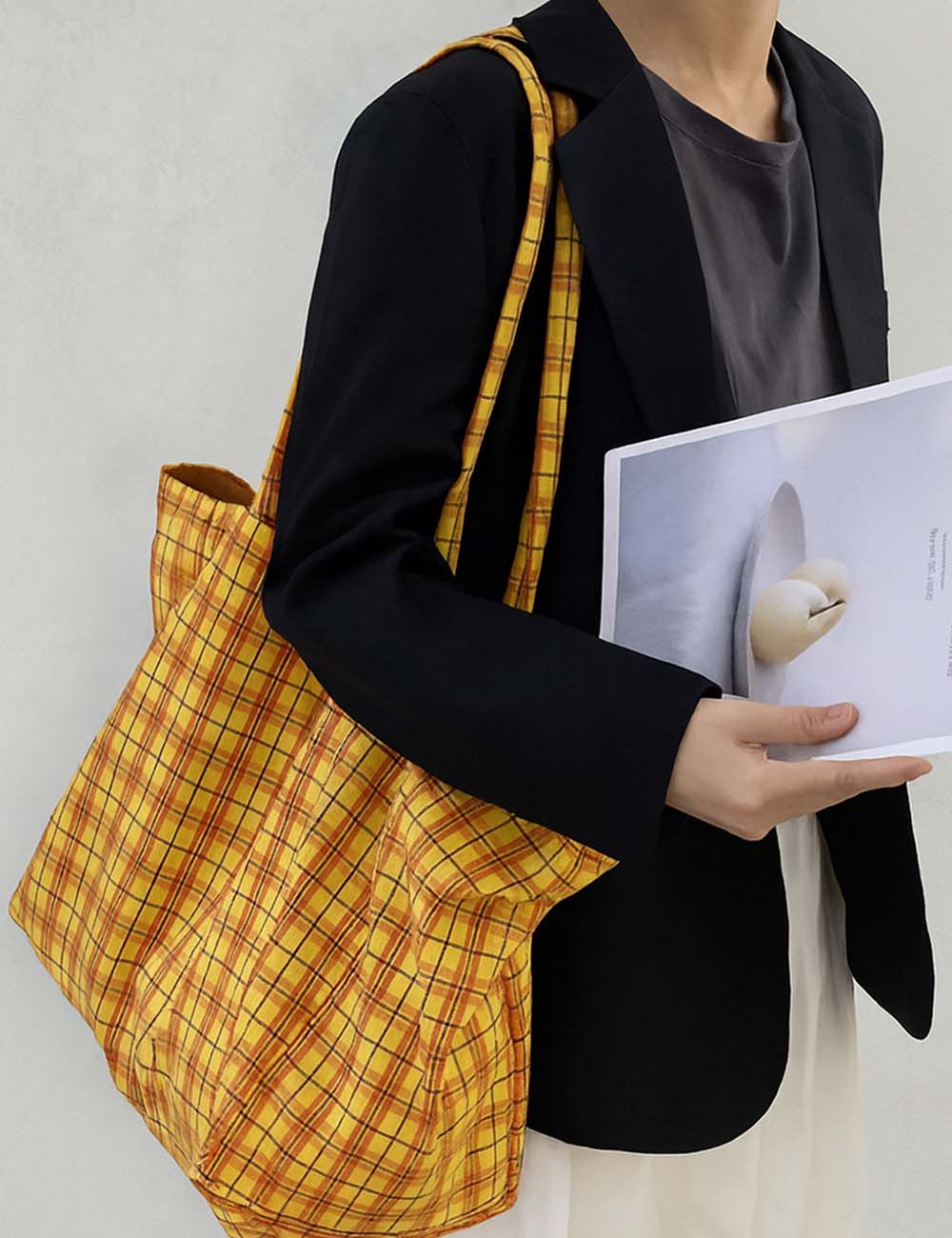 Ladies Plaid Gingham Letter Embroidery Shoulder Tote Ba