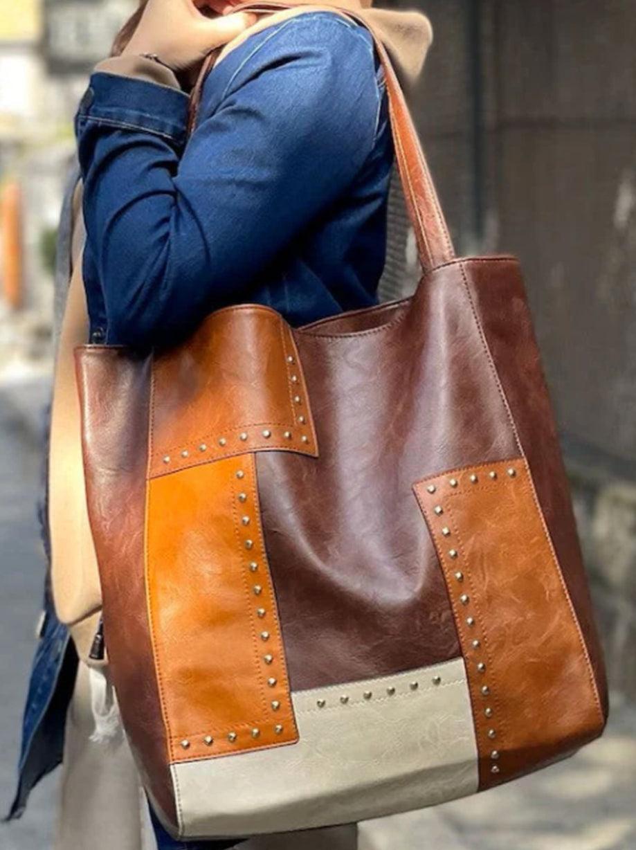 Ladies Color Block Nylon Shoulder Bag Large Capacity Tote Bag