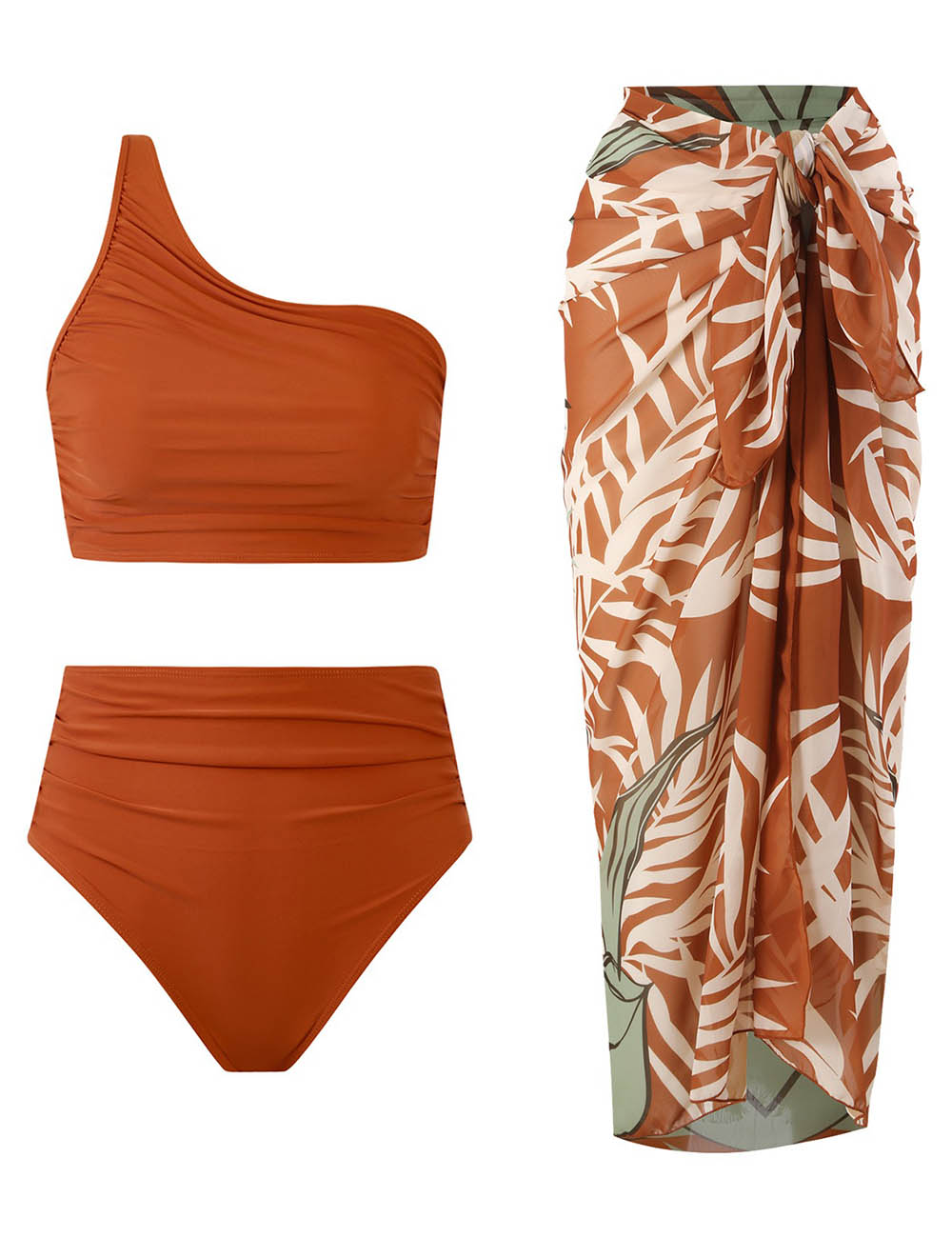 Ladies One Shoulder Floral Print 3PCS Bikini Set