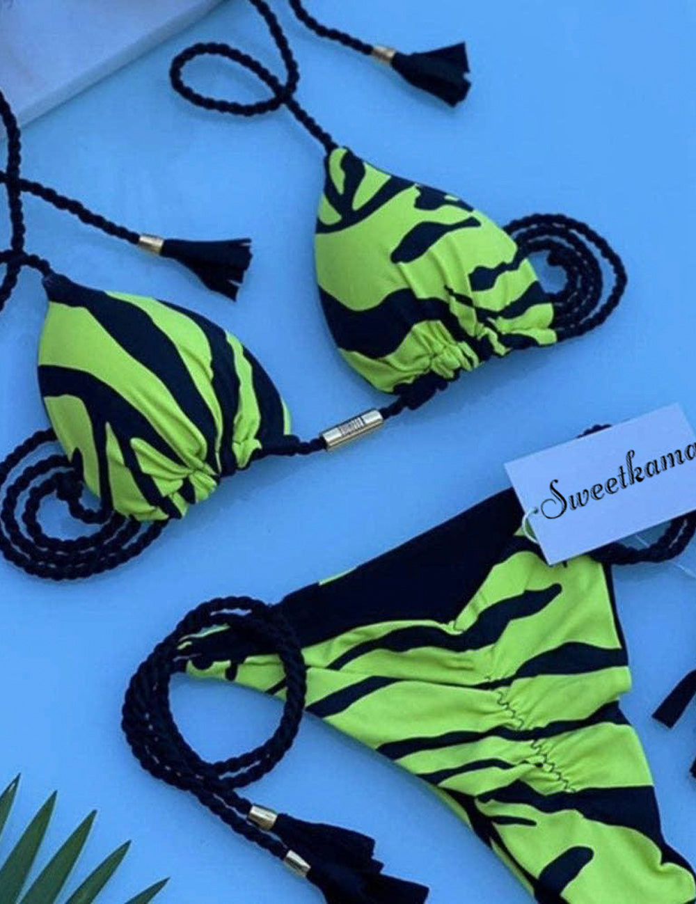 Ladies Triangle V-Neck 2PCS Bikini Set Swimsuit SKSW40074