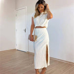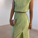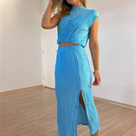 2PCS Solid Sleeveless Top and Skirt Ladies Set HK3065