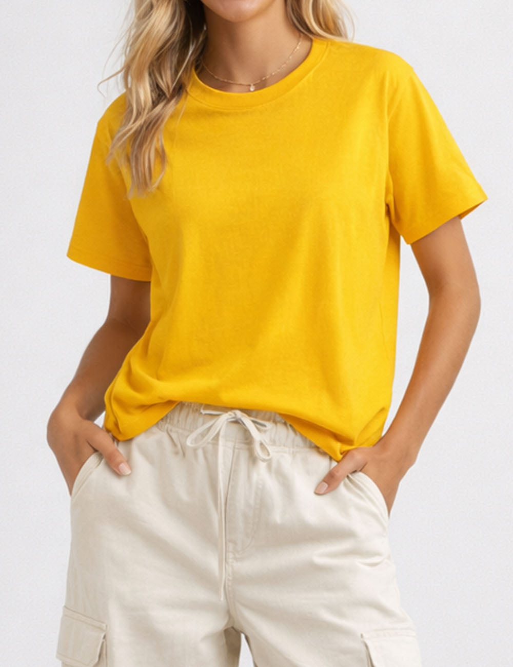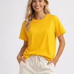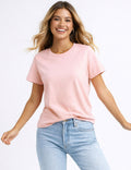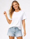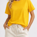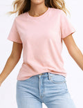 Ladies Casual Solid Color Round Neck Short Sleeves T-Shirts