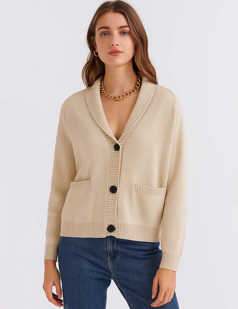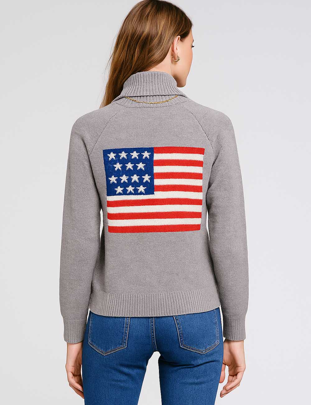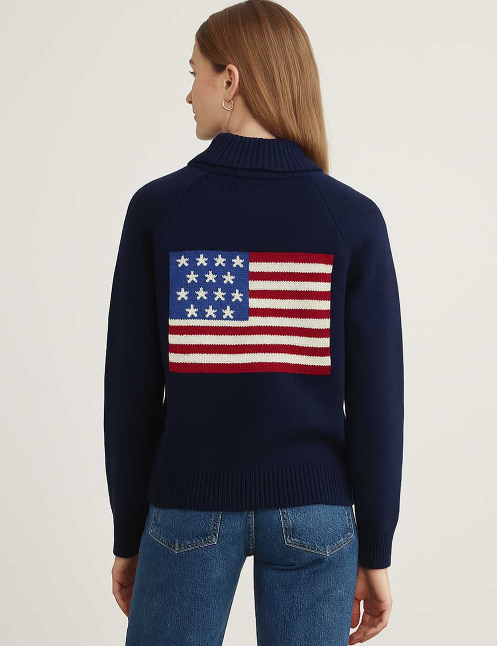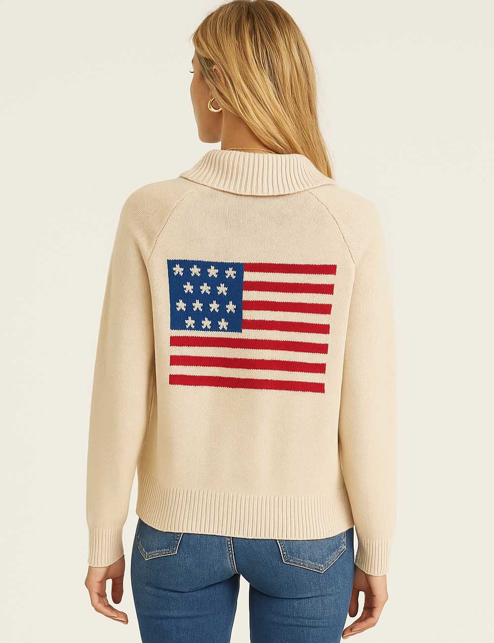Ladies V-Neck Button Closure American Flag Cardigan Sweater