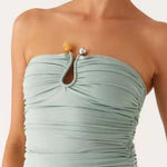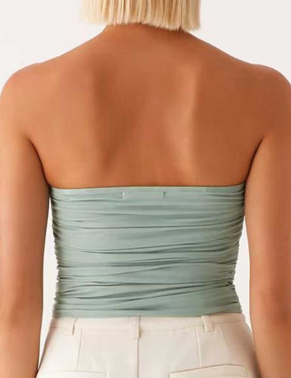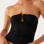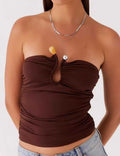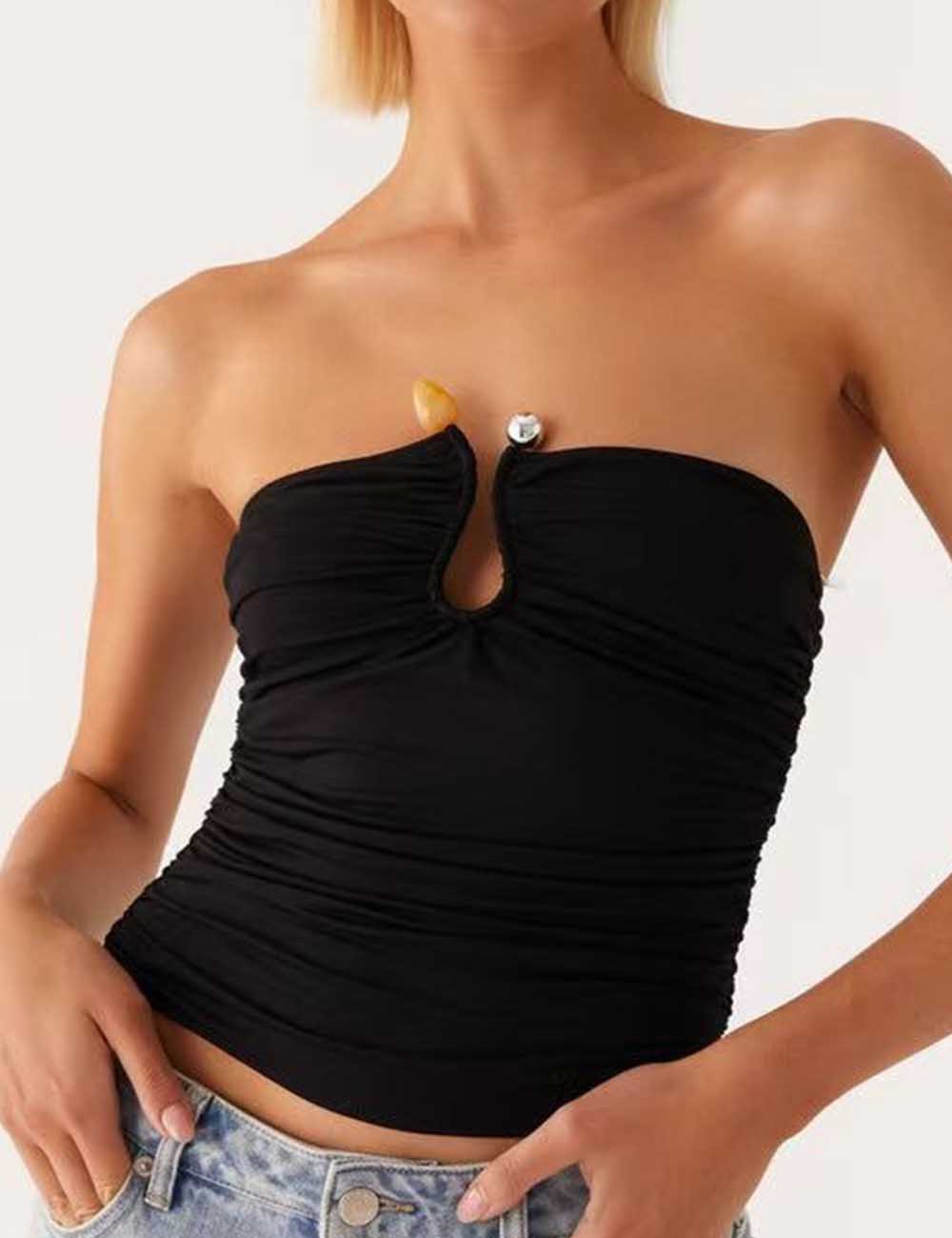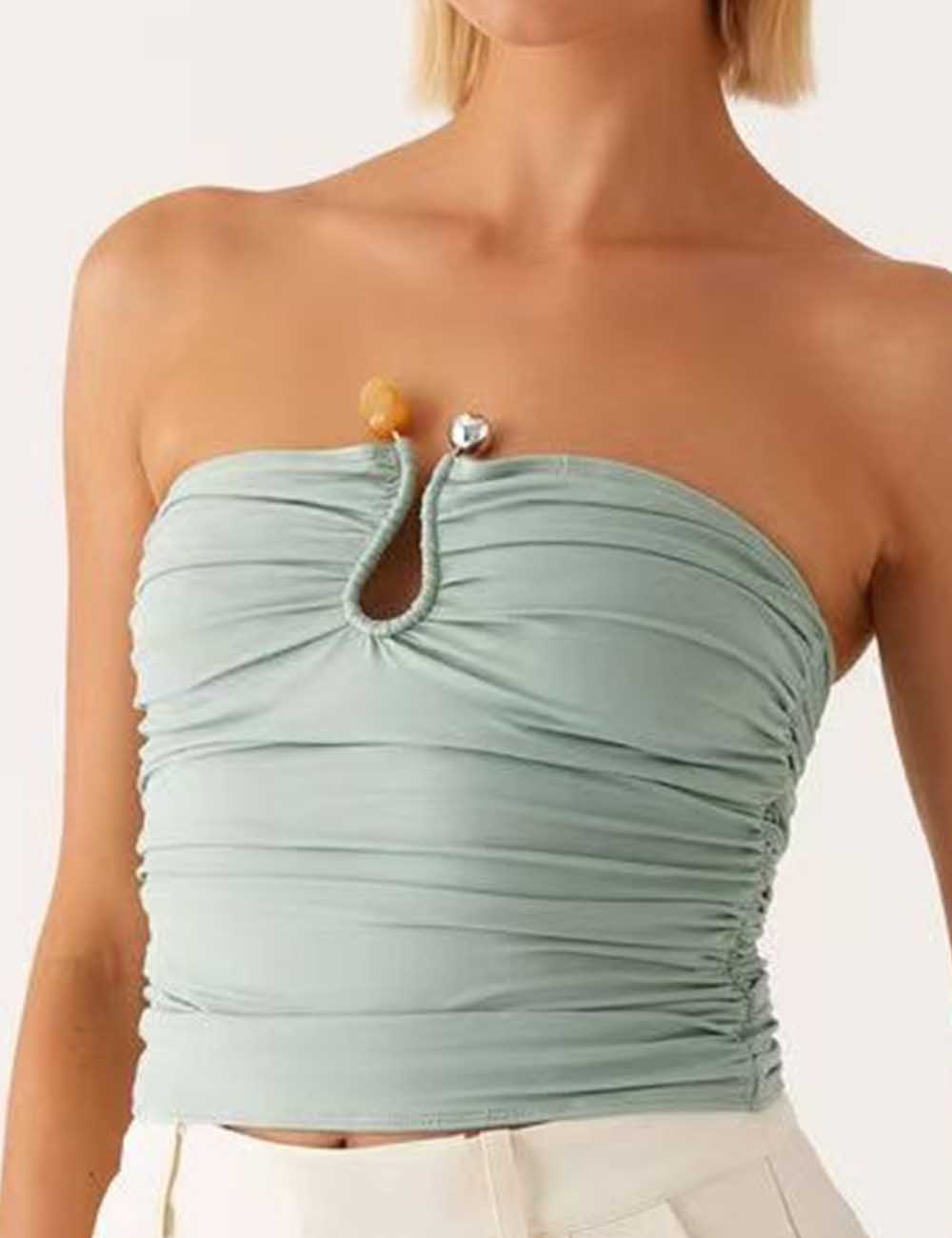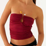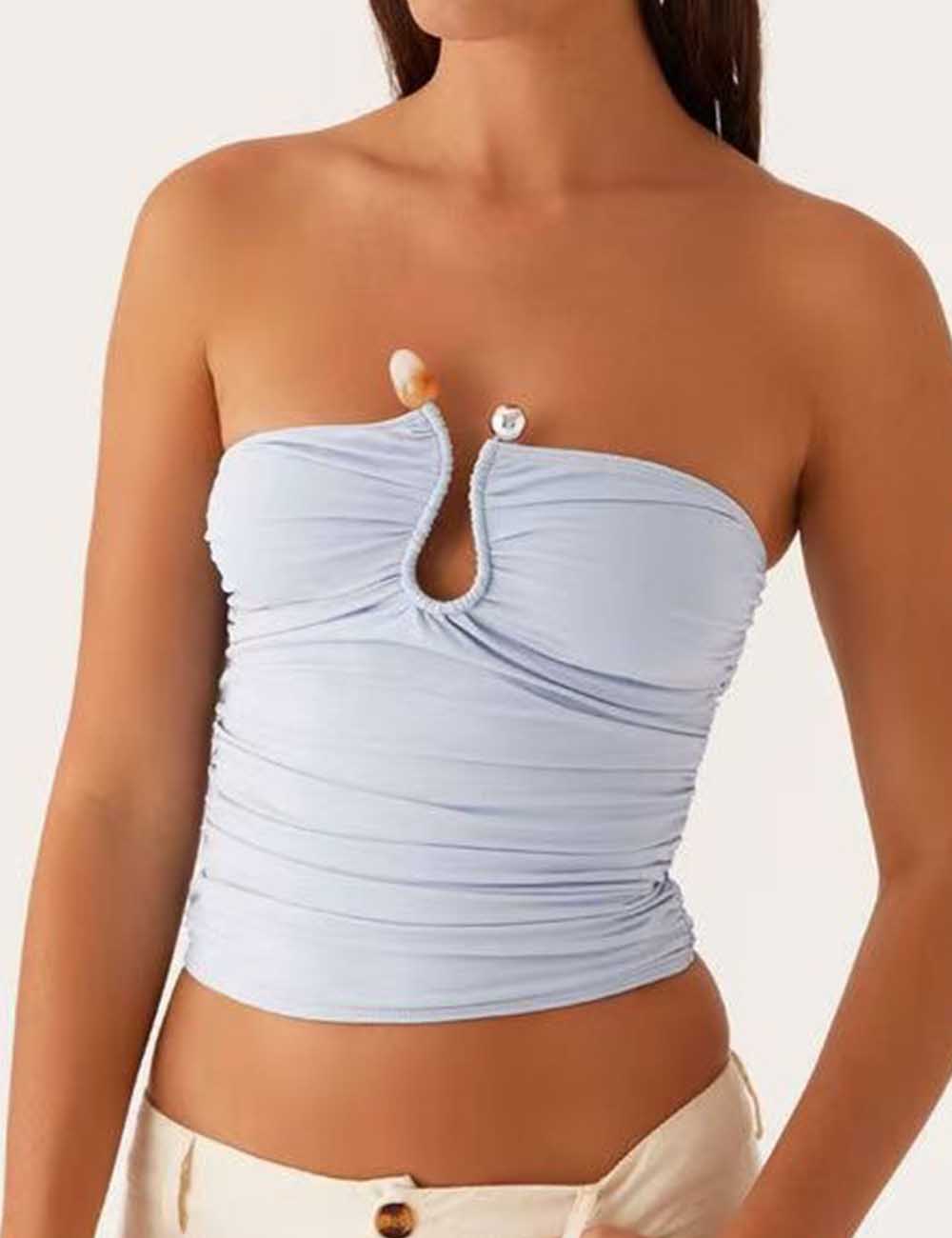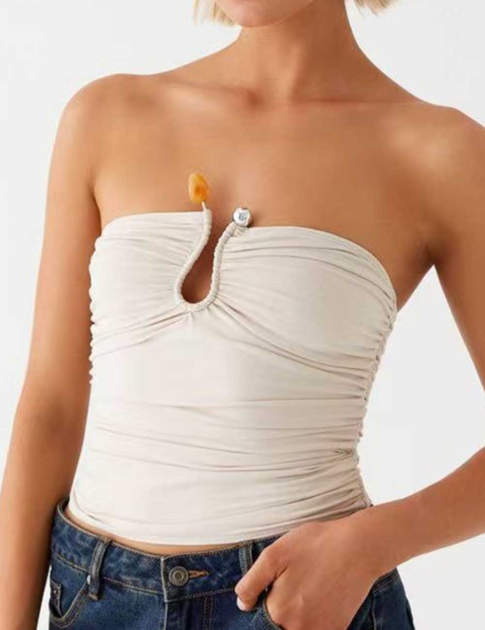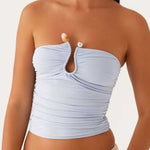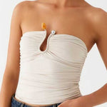 Ladies Solid Color Wrinkle Keyhole Cut Out Tube Top