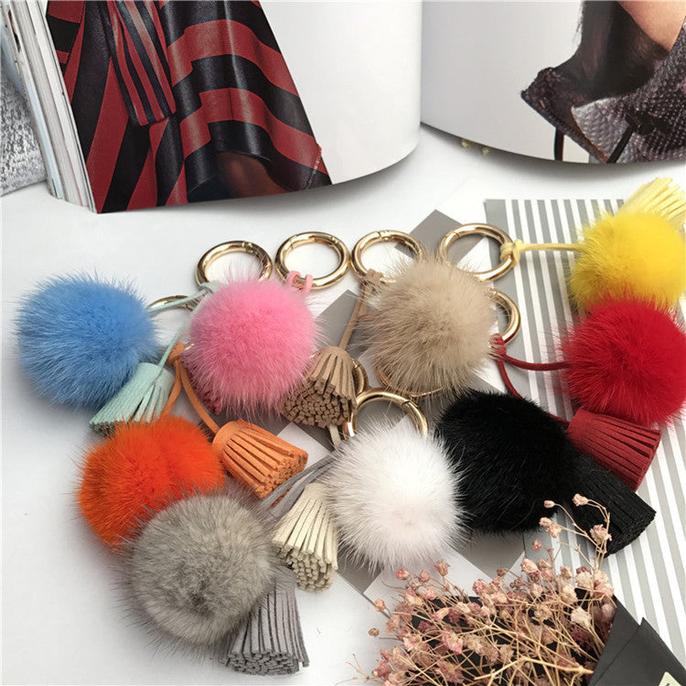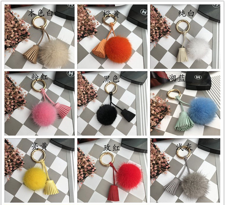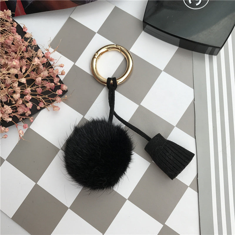 Ball Shaped Faux Mink Pandent Keyring SKAC4106