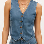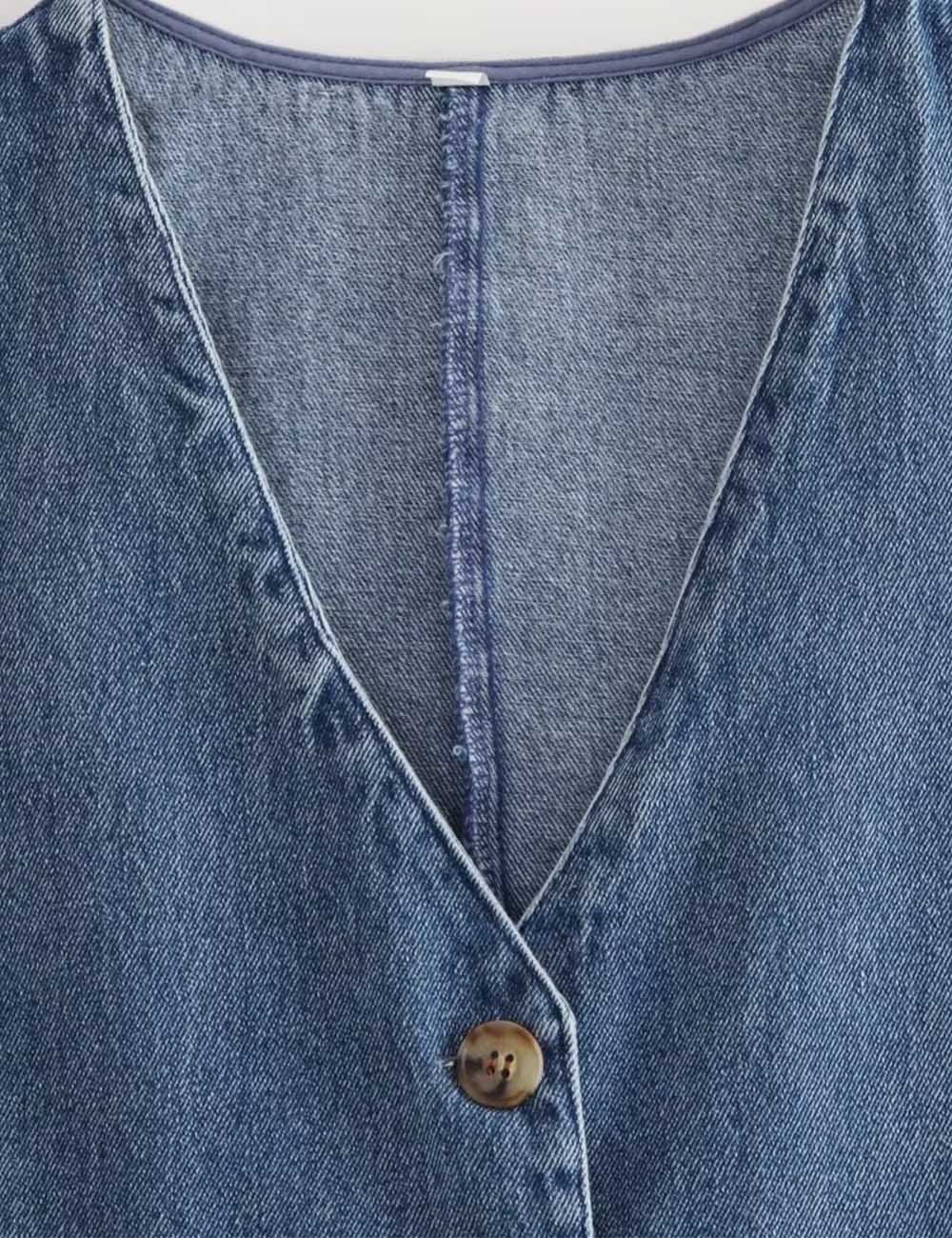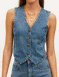 SWEETKAMA Denim Solid V-Neck Sleeveless Women Daily Vest B88464