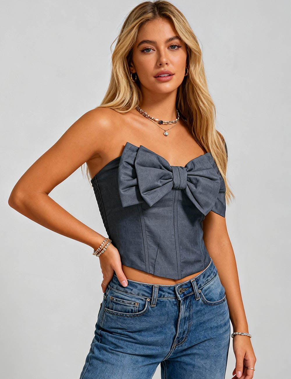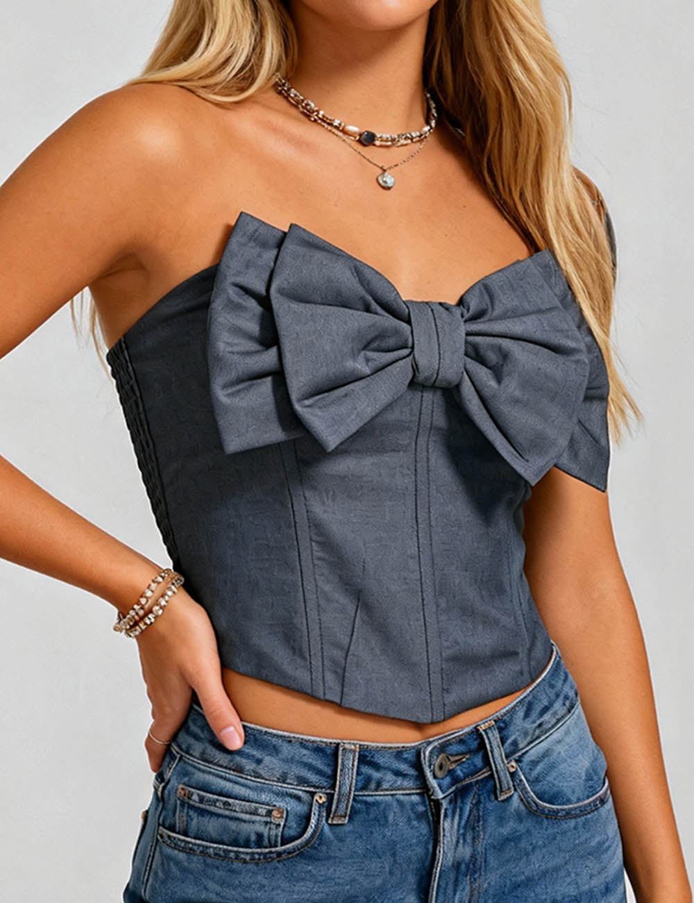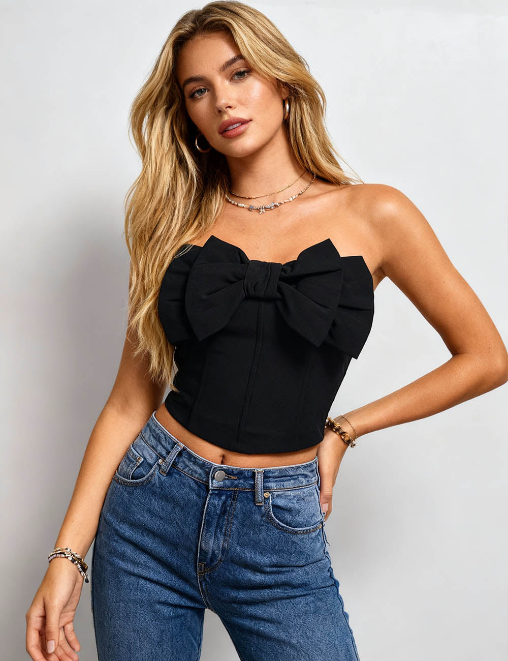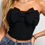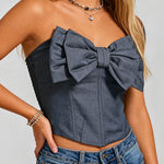 Ladies Bow Neck Corset Solid Color Crop Tube Top