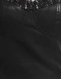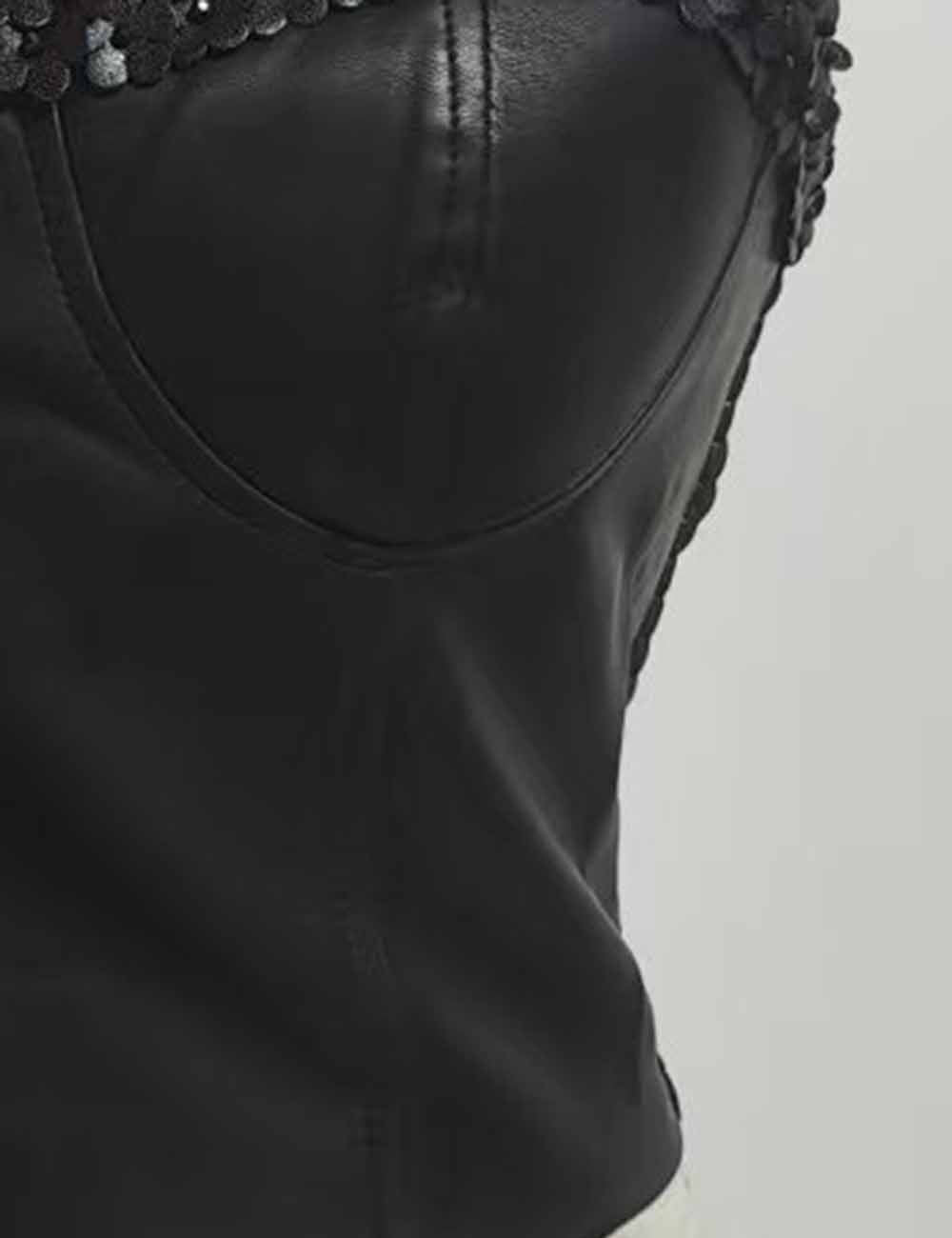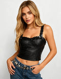 Ladies Faux Leather Scalloped Trim Smocked Back Corset Top