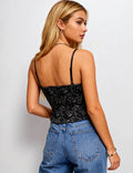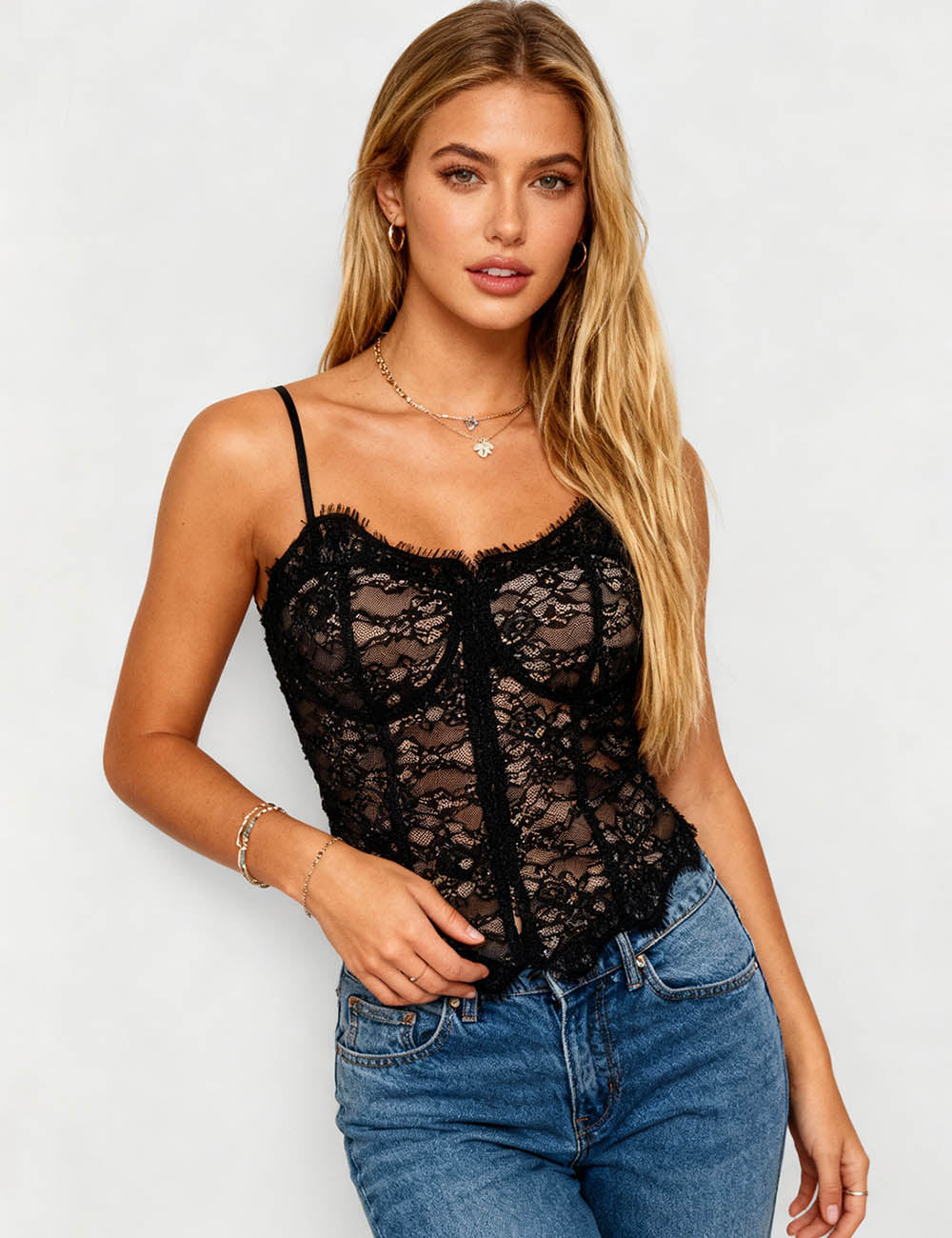 Ladies Lace Trim Corset Sweetheart Neckline Cami Top