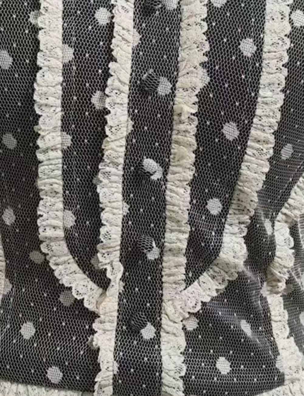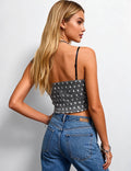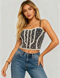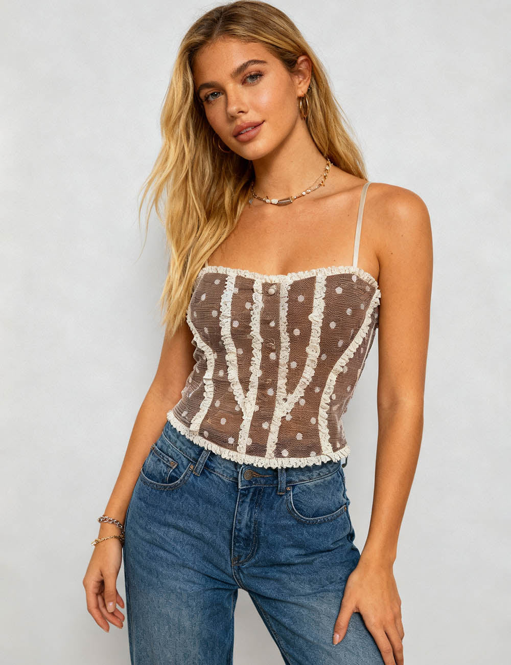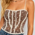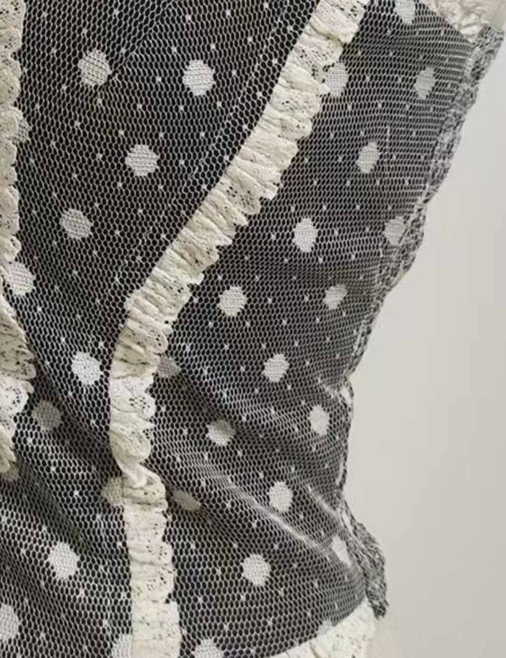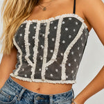 Ladies Polka Dot Mesh Corset Square Neck Ruffle Trim Cami Top