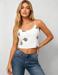 Ladies Rose Print Corset Sequin Knit Cami Top