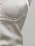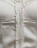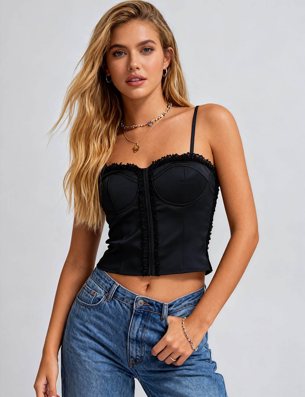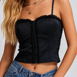 Lace Ruffle Trim Corset Smocked Back Crop Cami Top