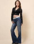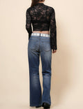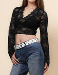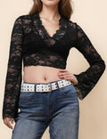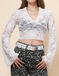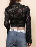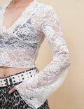 Ladie Floral Lace See Sheer Crop Layring Top SKT41028