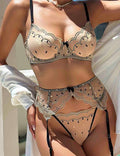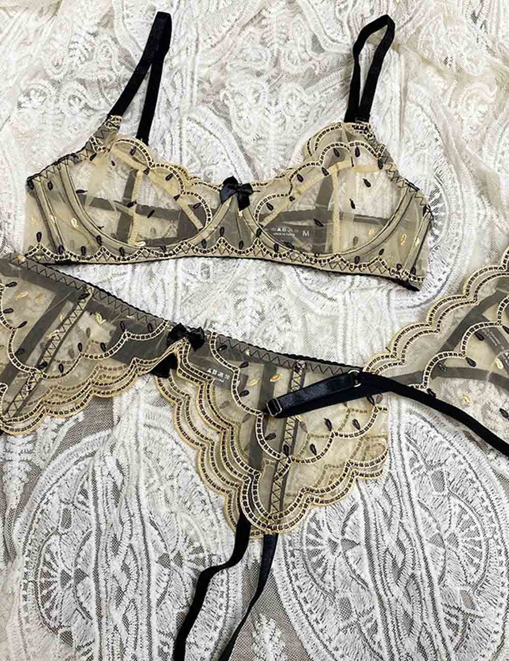 Ladiees Polka Dot Embroidery See Through 3PCS Lingerie Set 8WLV255