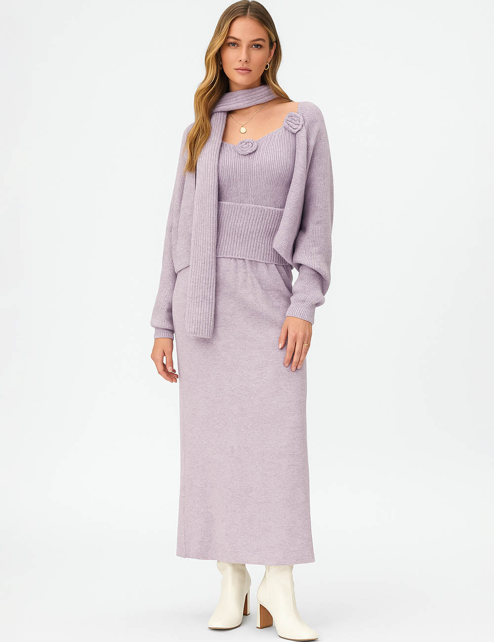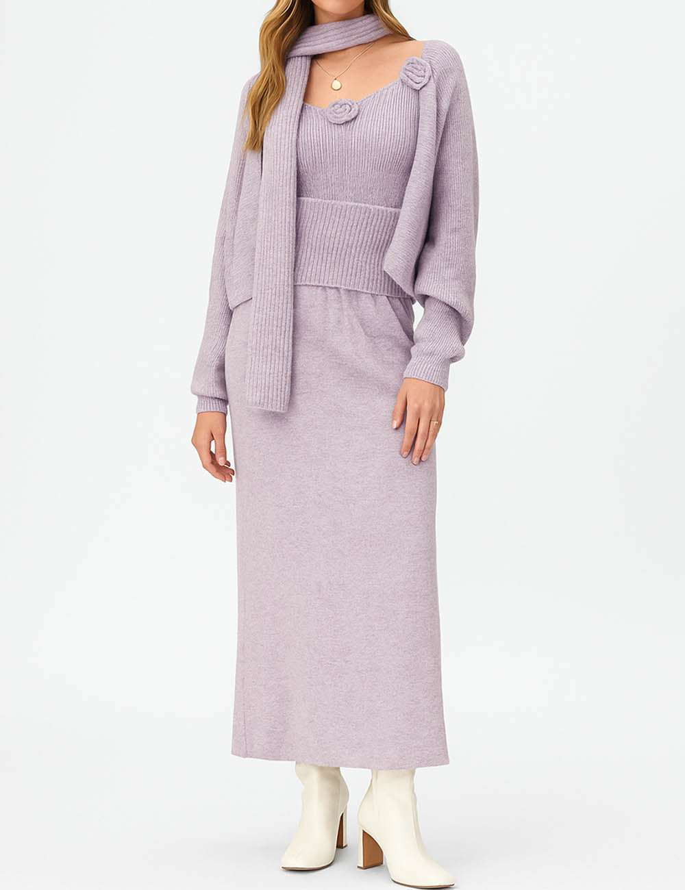 * Package include 1 * Ladies Sweater Vest & Midi Skirt & Cardigan & Scarf