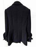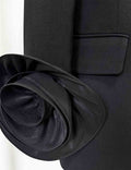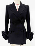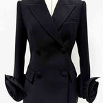 Ladies 3D Flower Double-Breast Black Long Blazer 8SKBZ5VH14