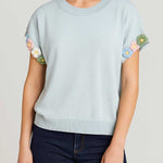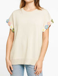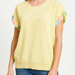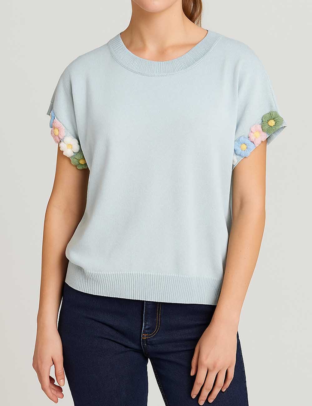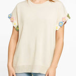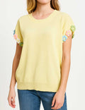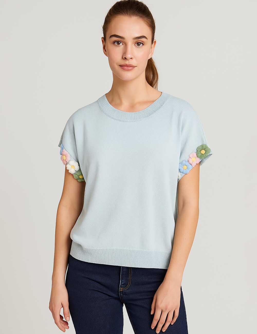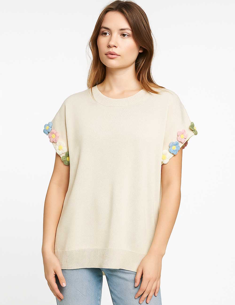 Ladies 3D Flower Pullover Short Sleeves Sweater Knit Top