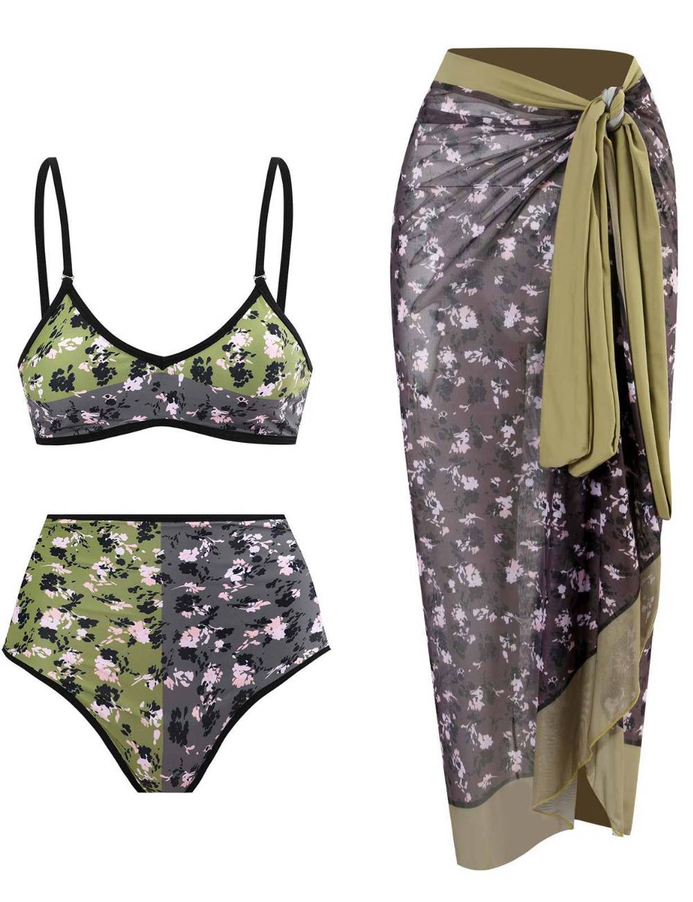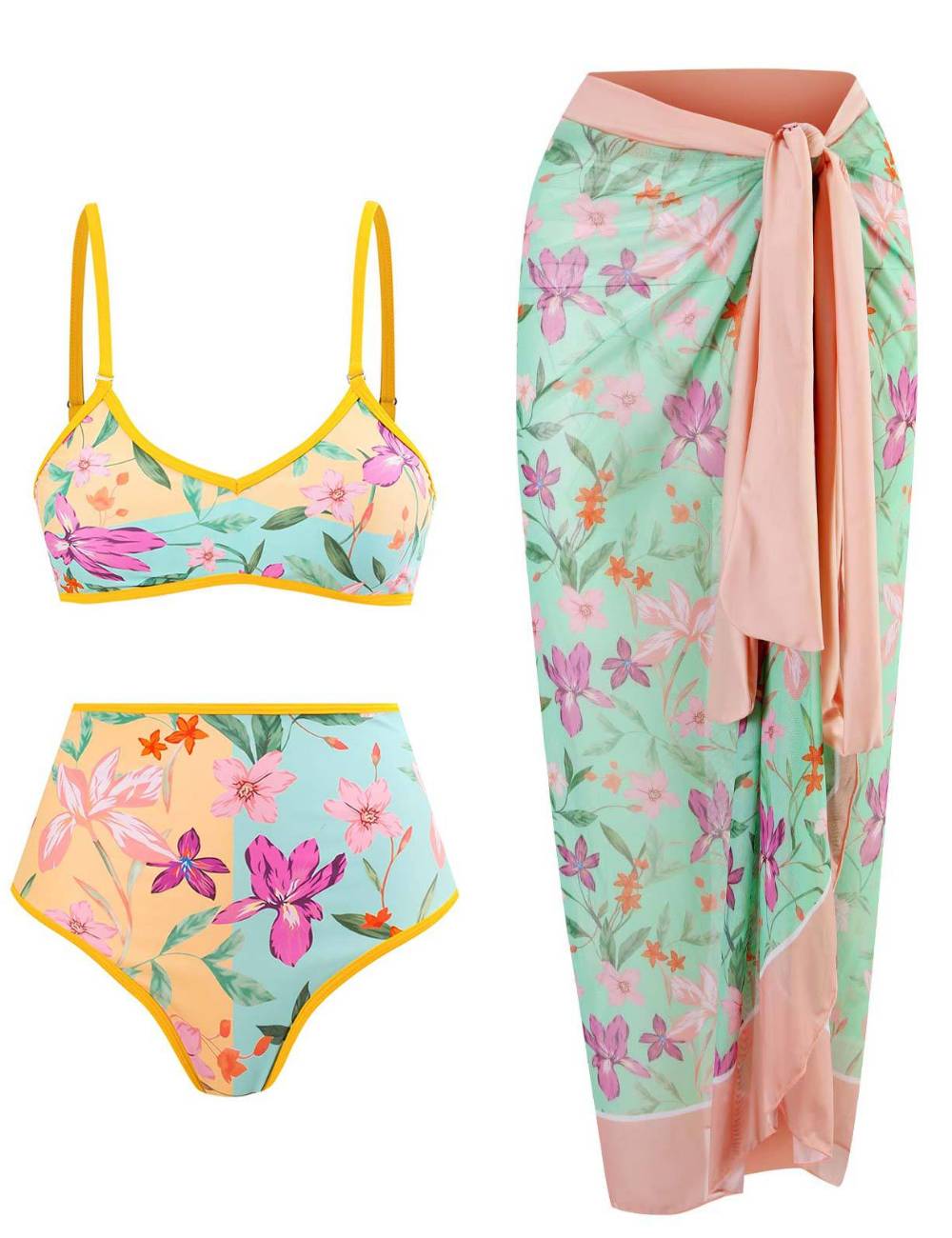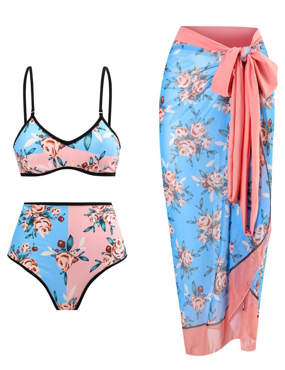 Ladies AB Side Floral Bikini Set with Salong SKSW40135