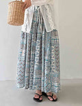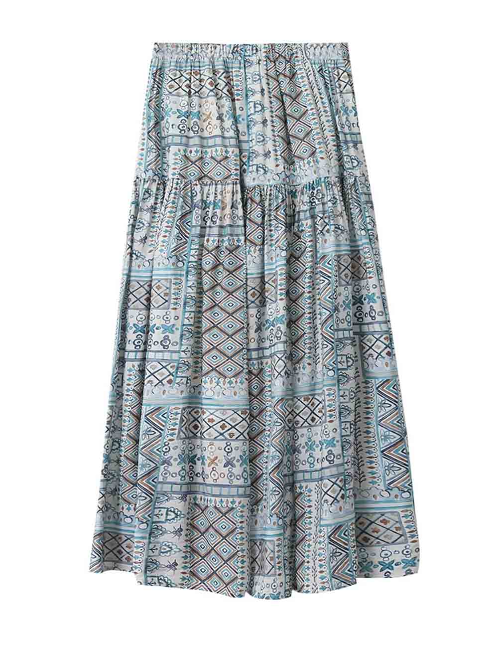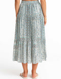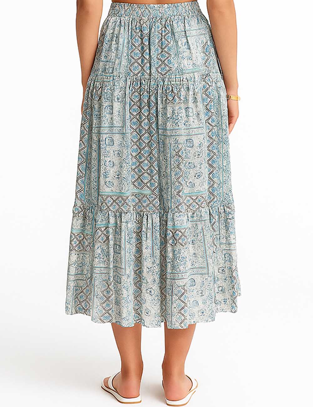 Ladies Abstract Print Tiered Midi Skirt