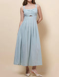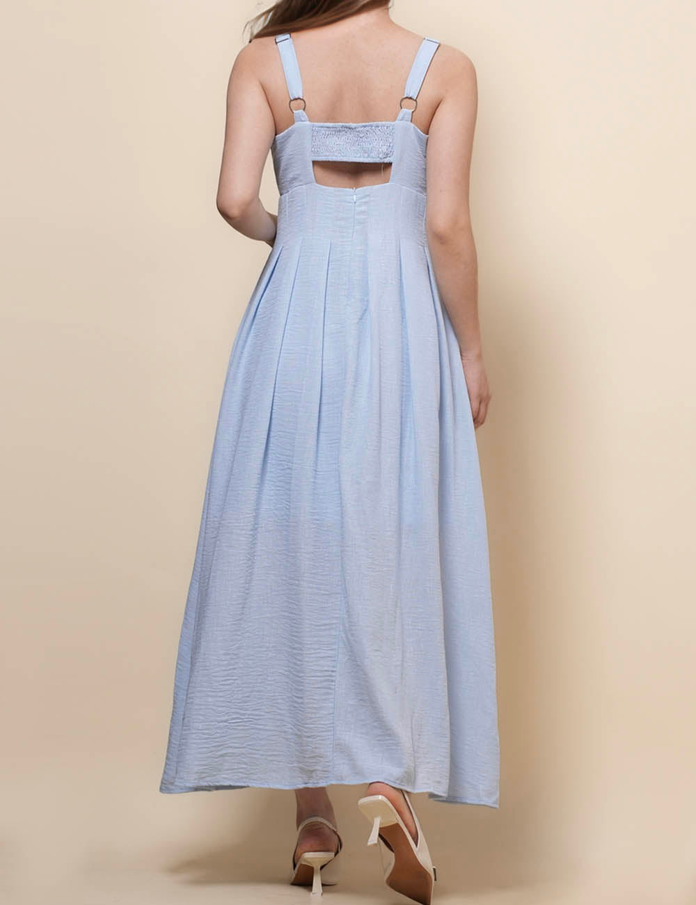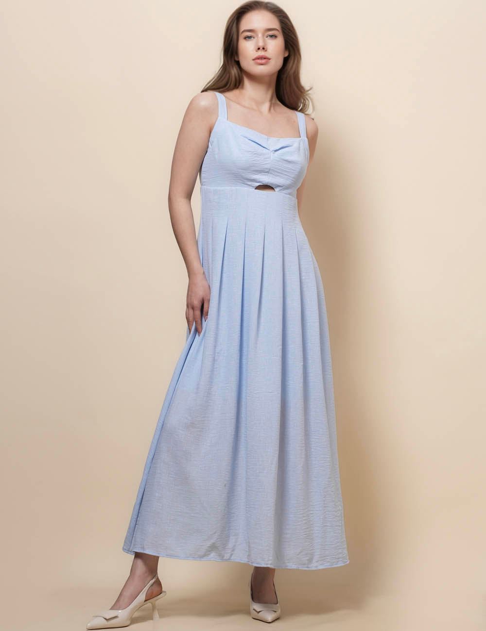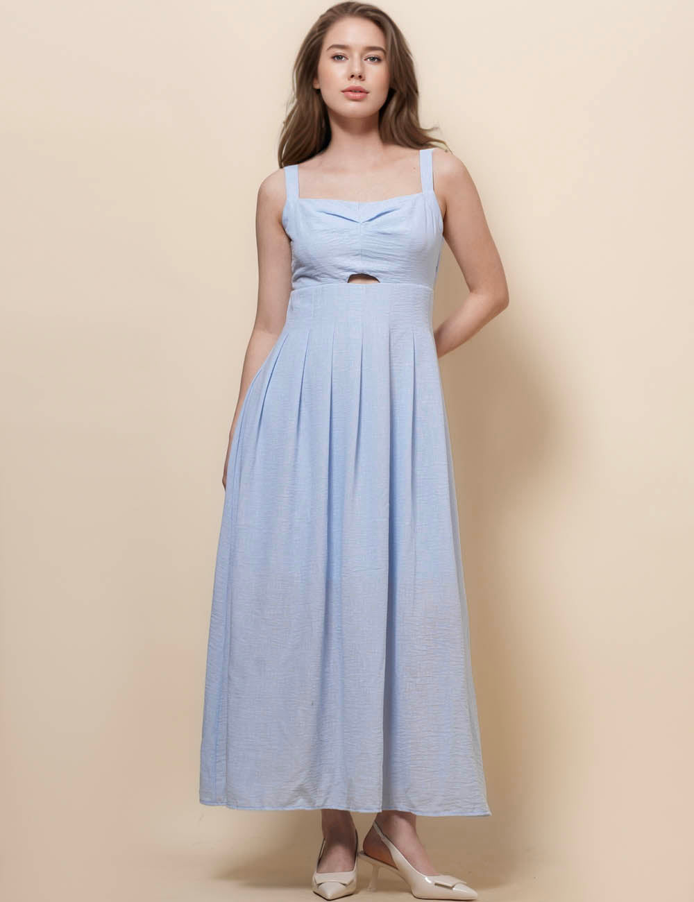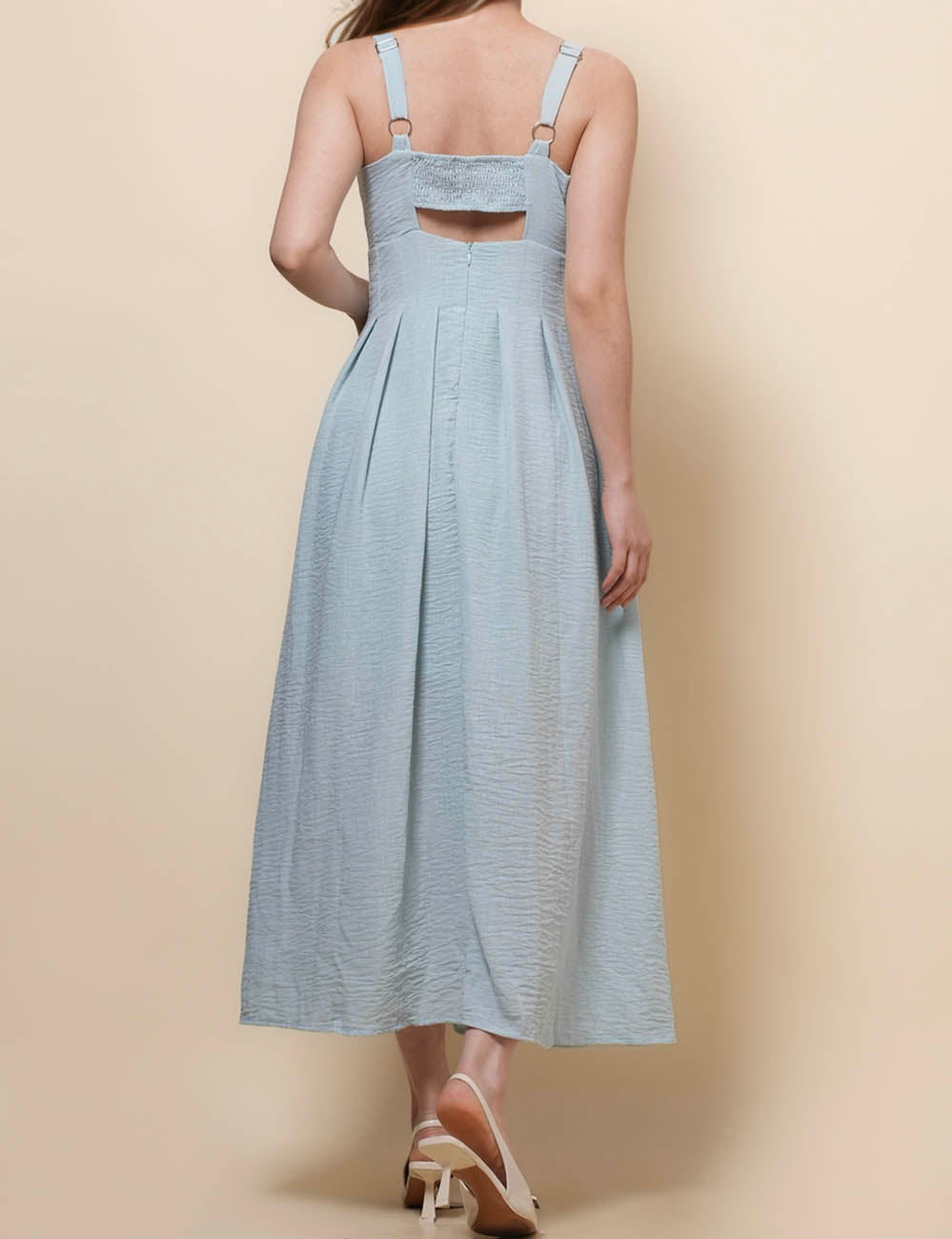 Ladies Back Cut Out Solid Color Midi Dress SKD51015