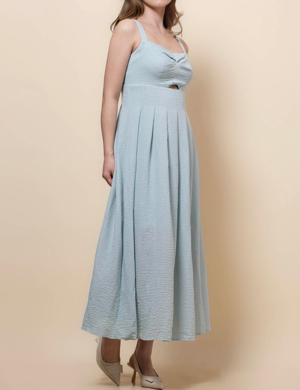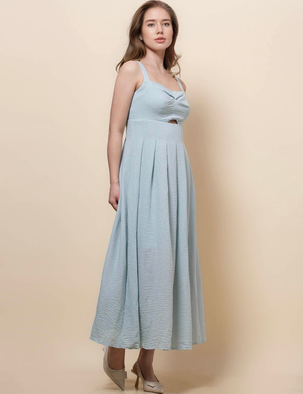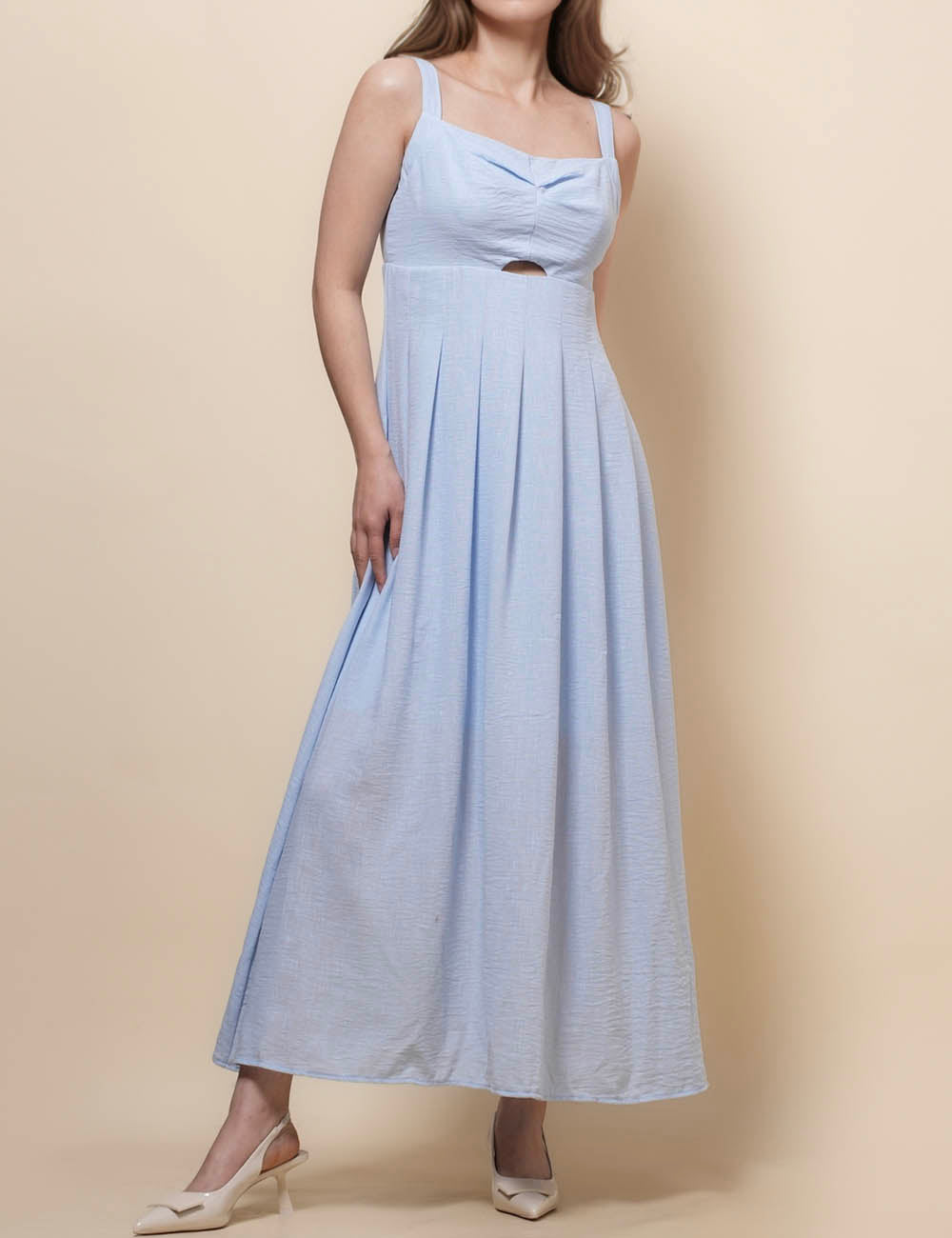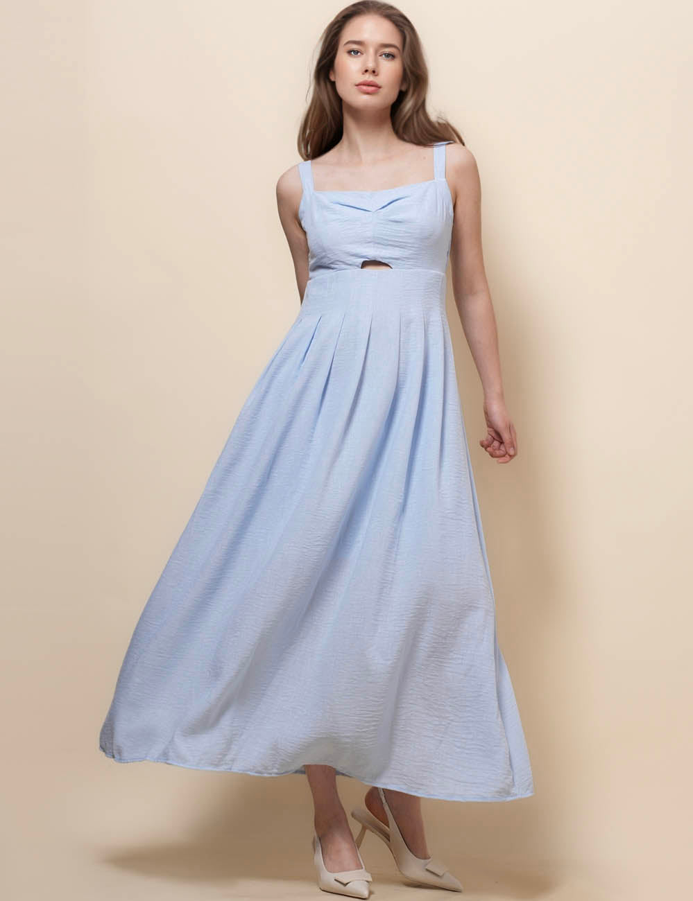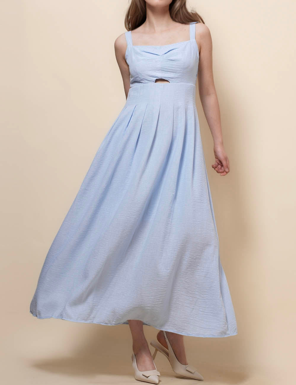 Ladies Back Cut Out Solid Color Midi Dress SKD51015