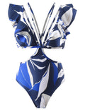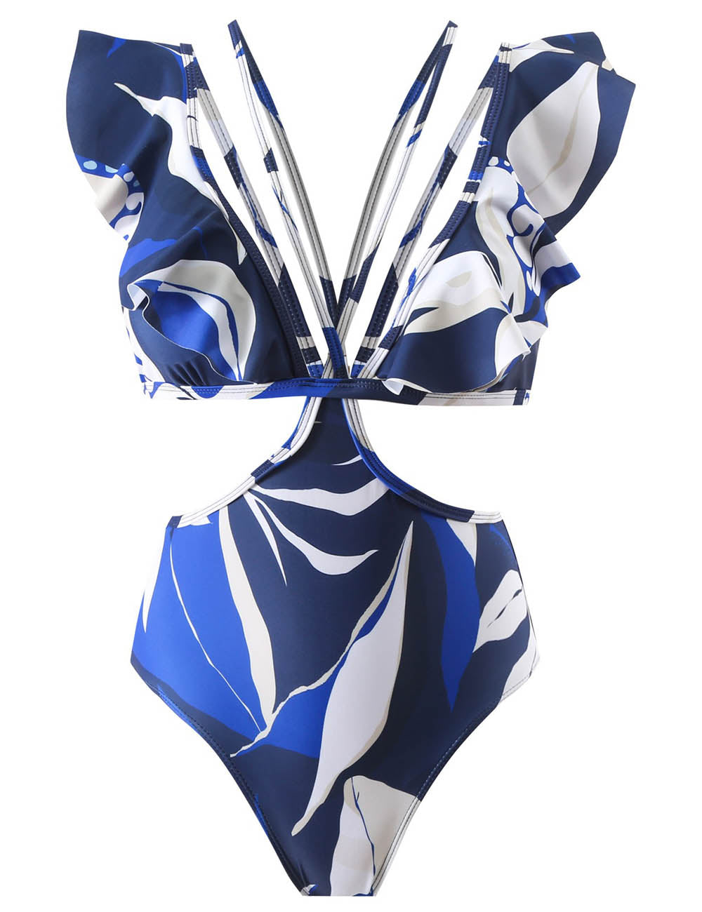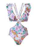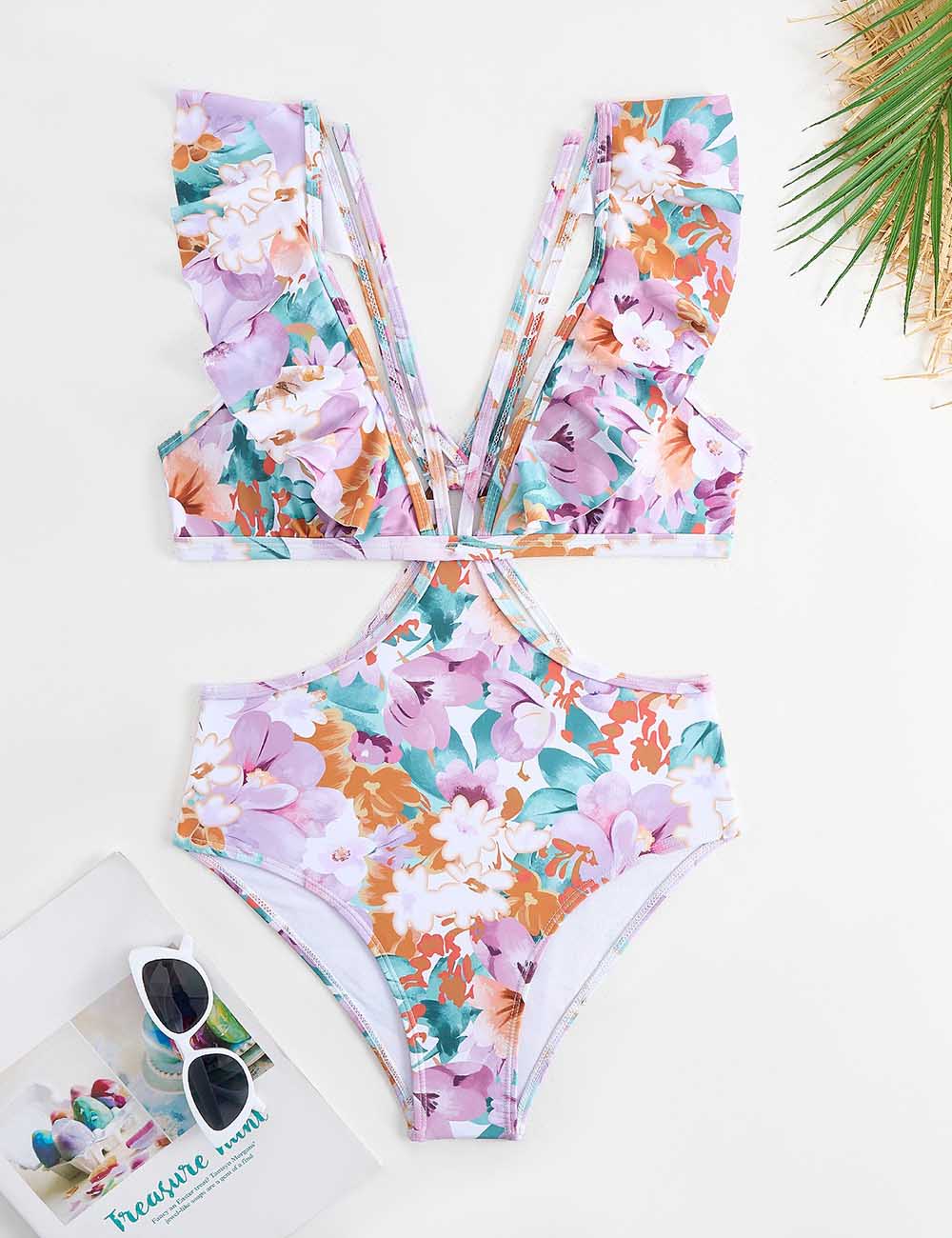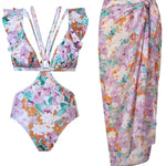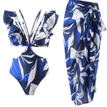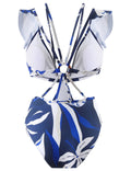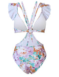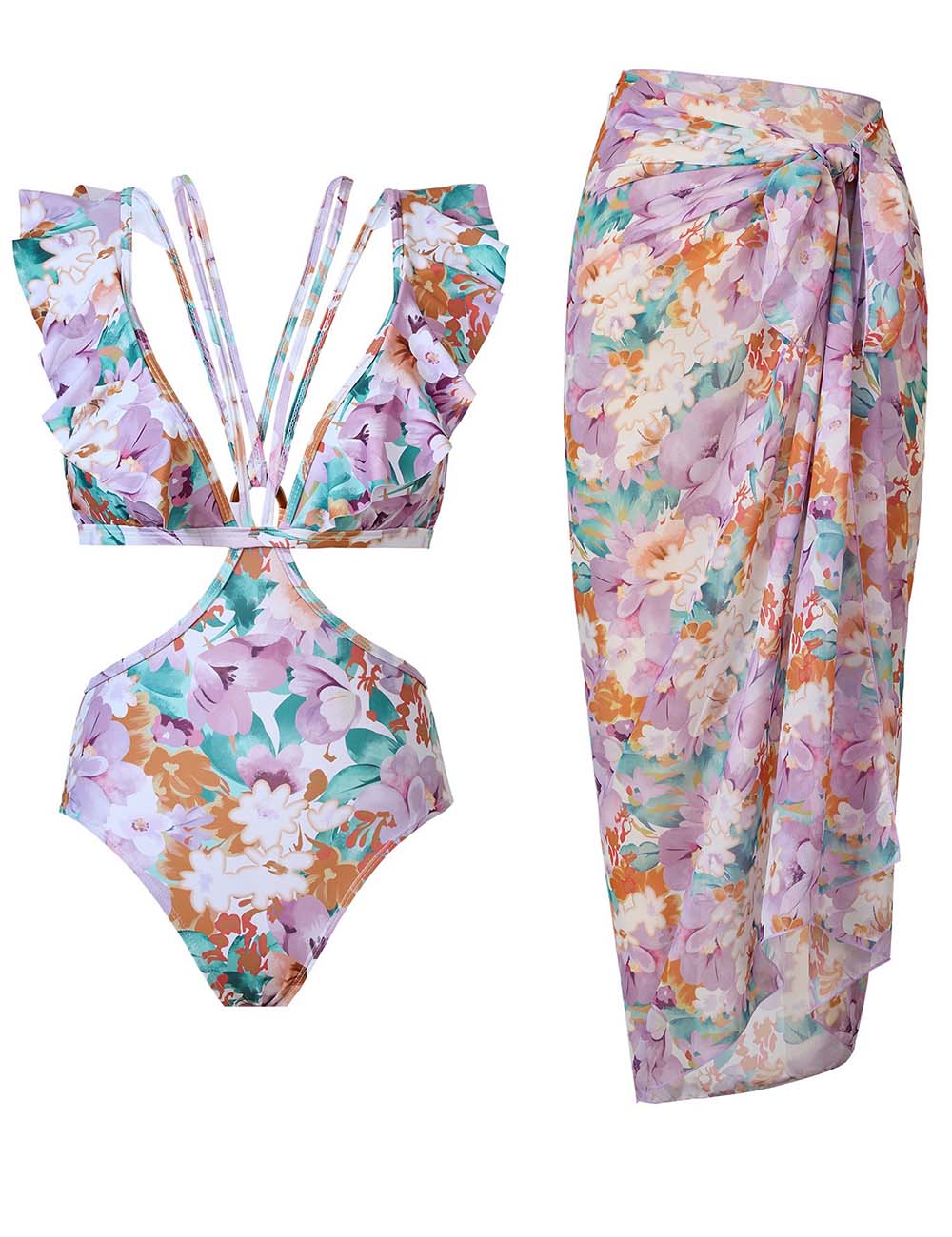 Ladies Back Open Floral Print One Piece Swimwear with Salong