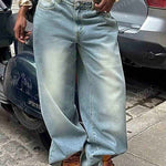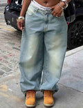 Ladies Baggy Jeans Pocket Wide Leg Denim Pants