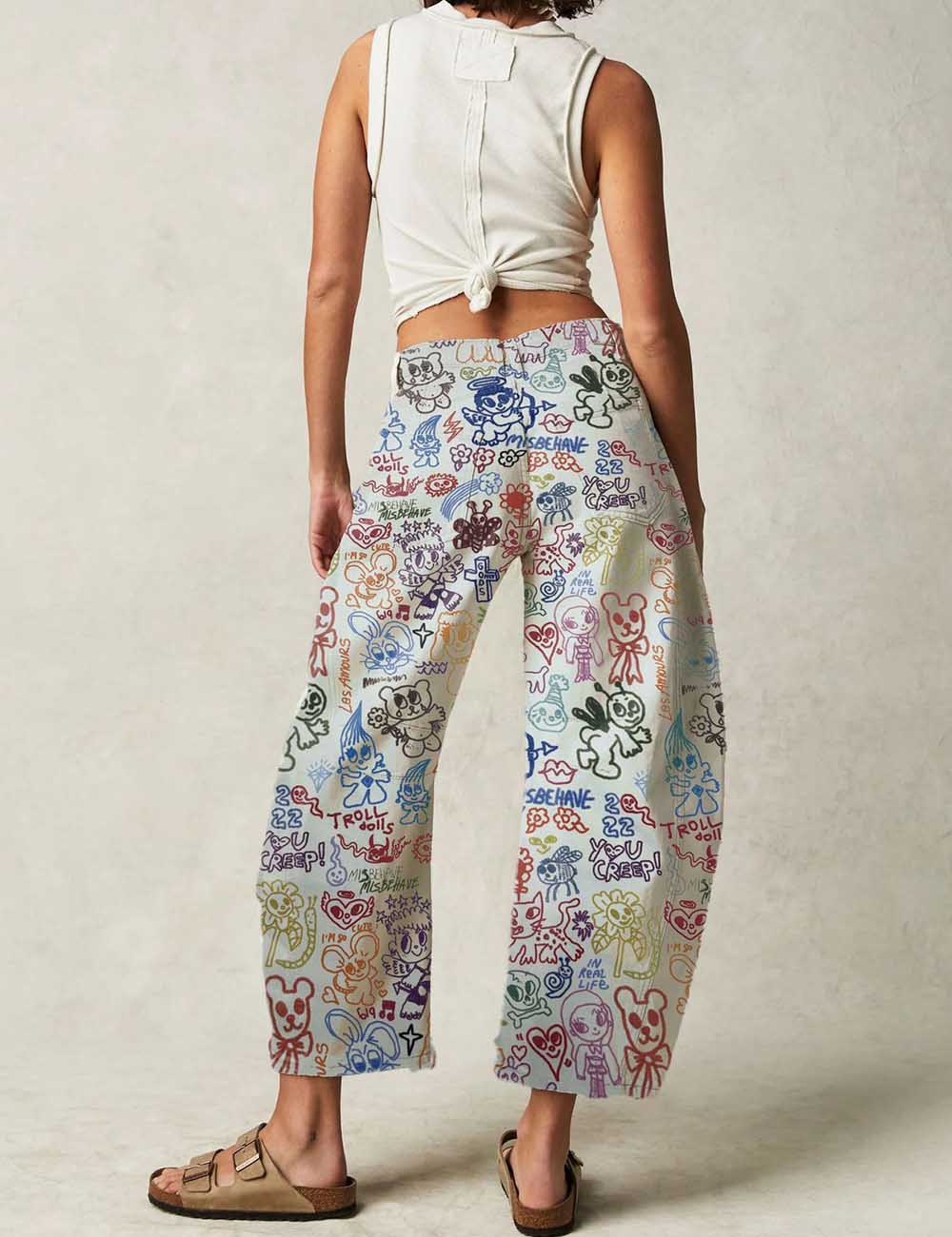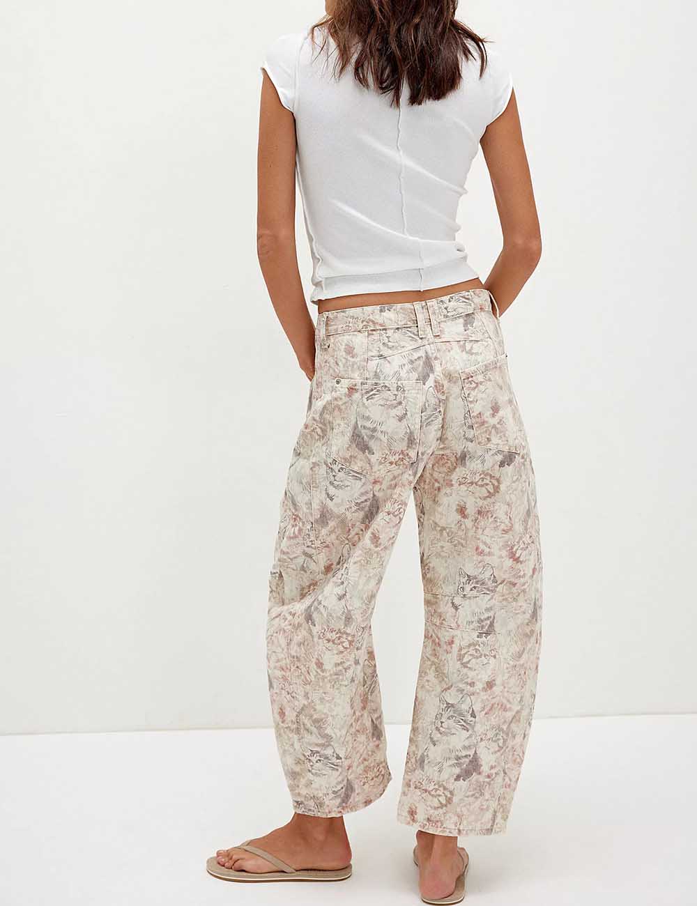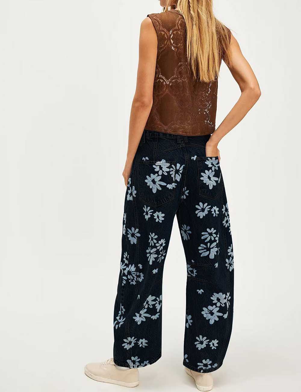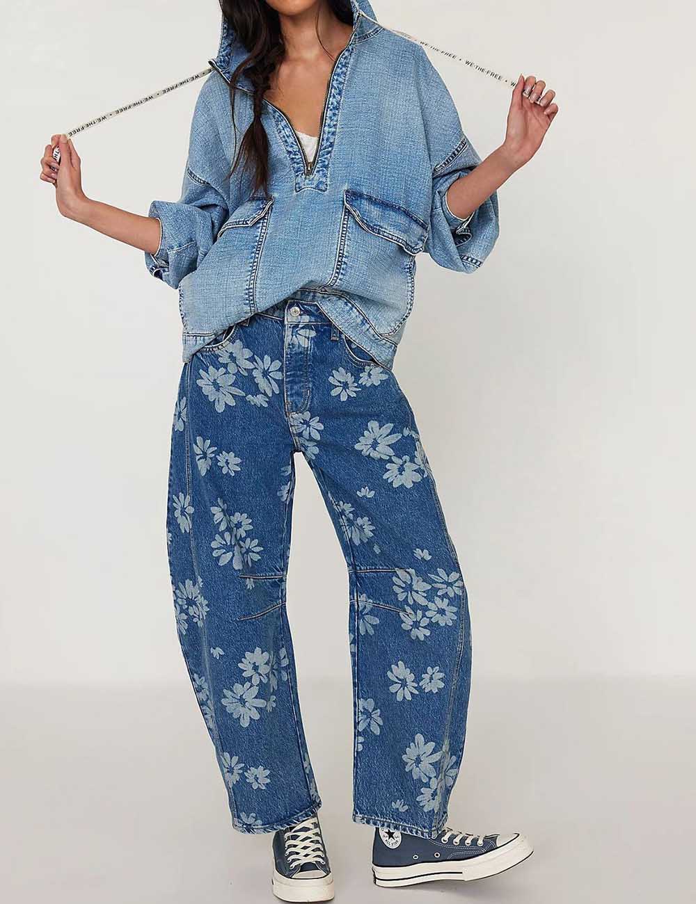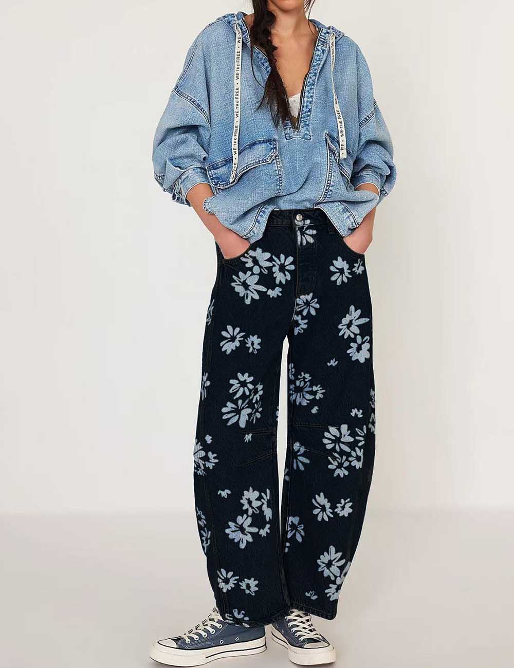 Ladies Barrel Print Jeans Daily Denim Pants SKP5KC67
