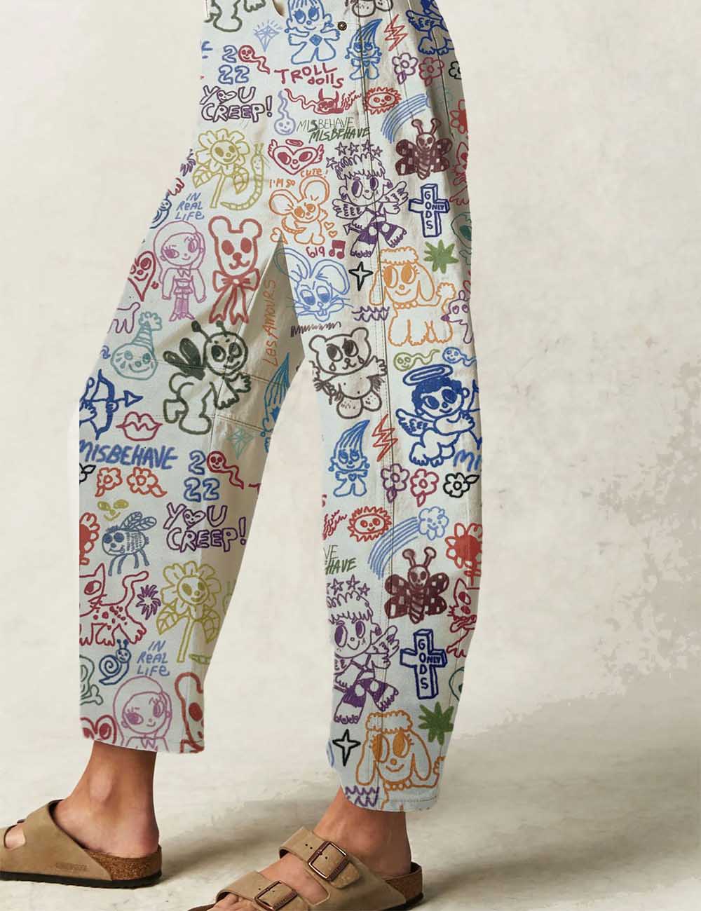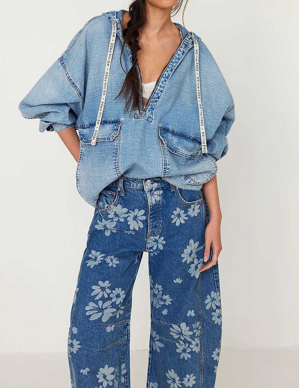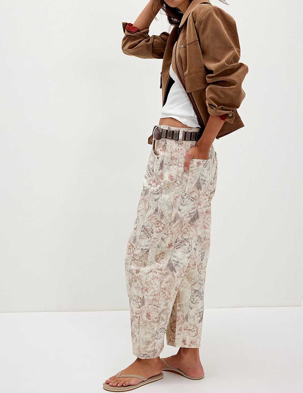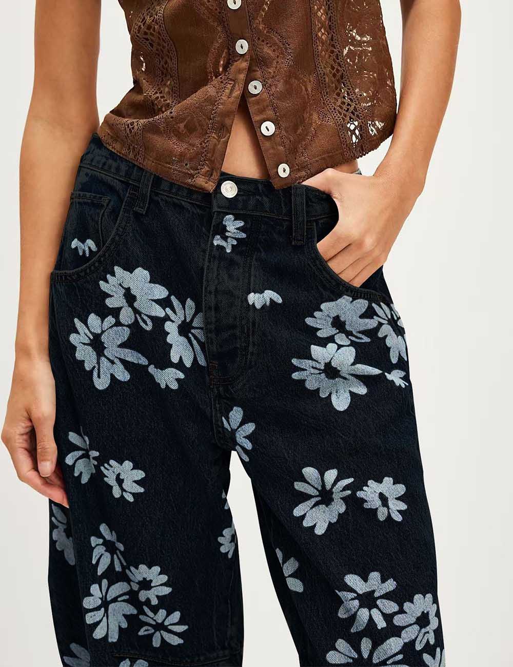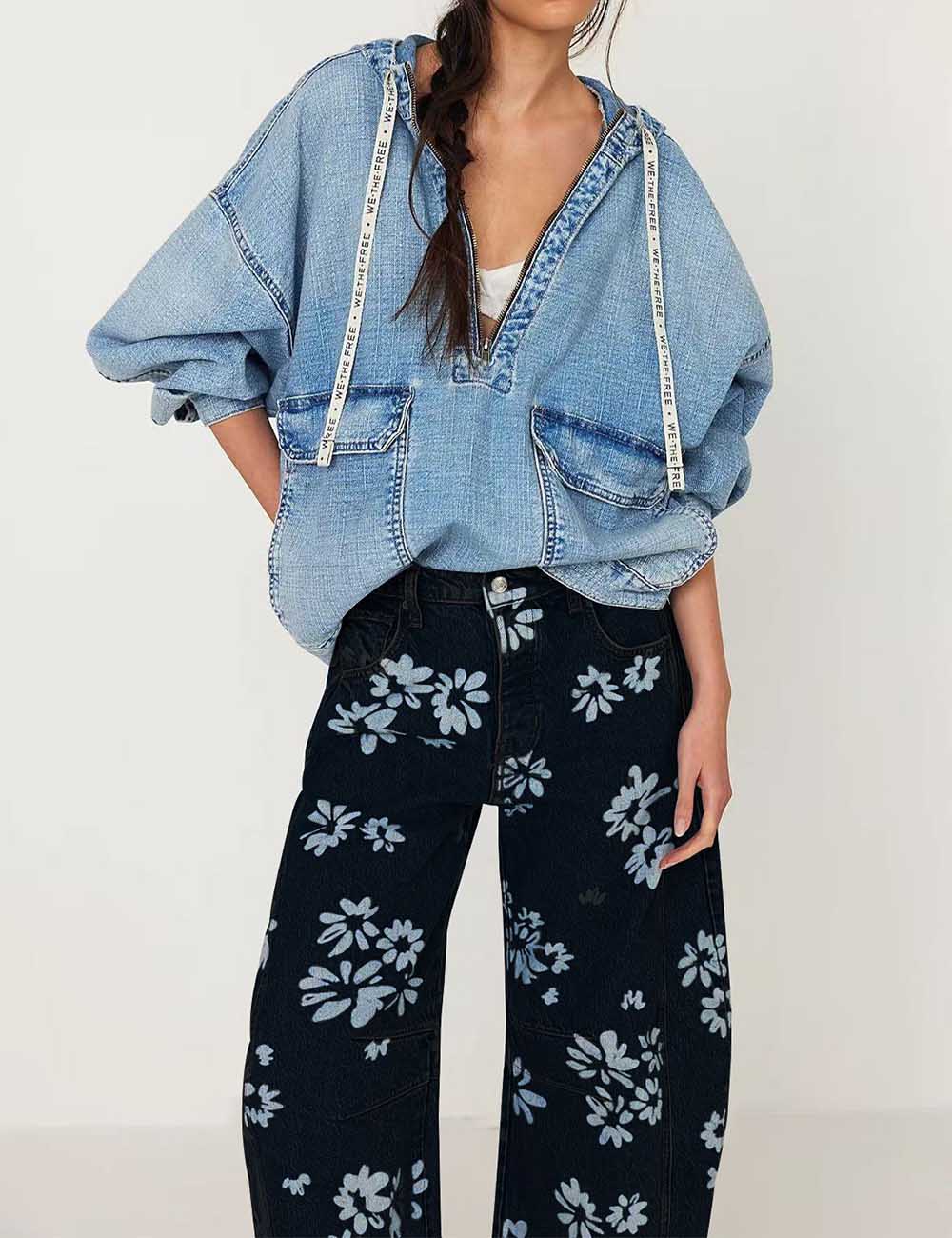 Ladies Barrel Print Jeans Daily Denim Pants SKP5KC67