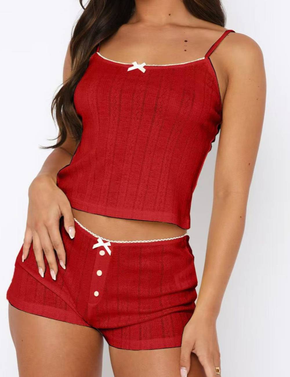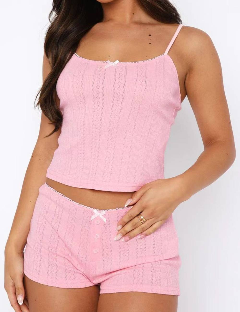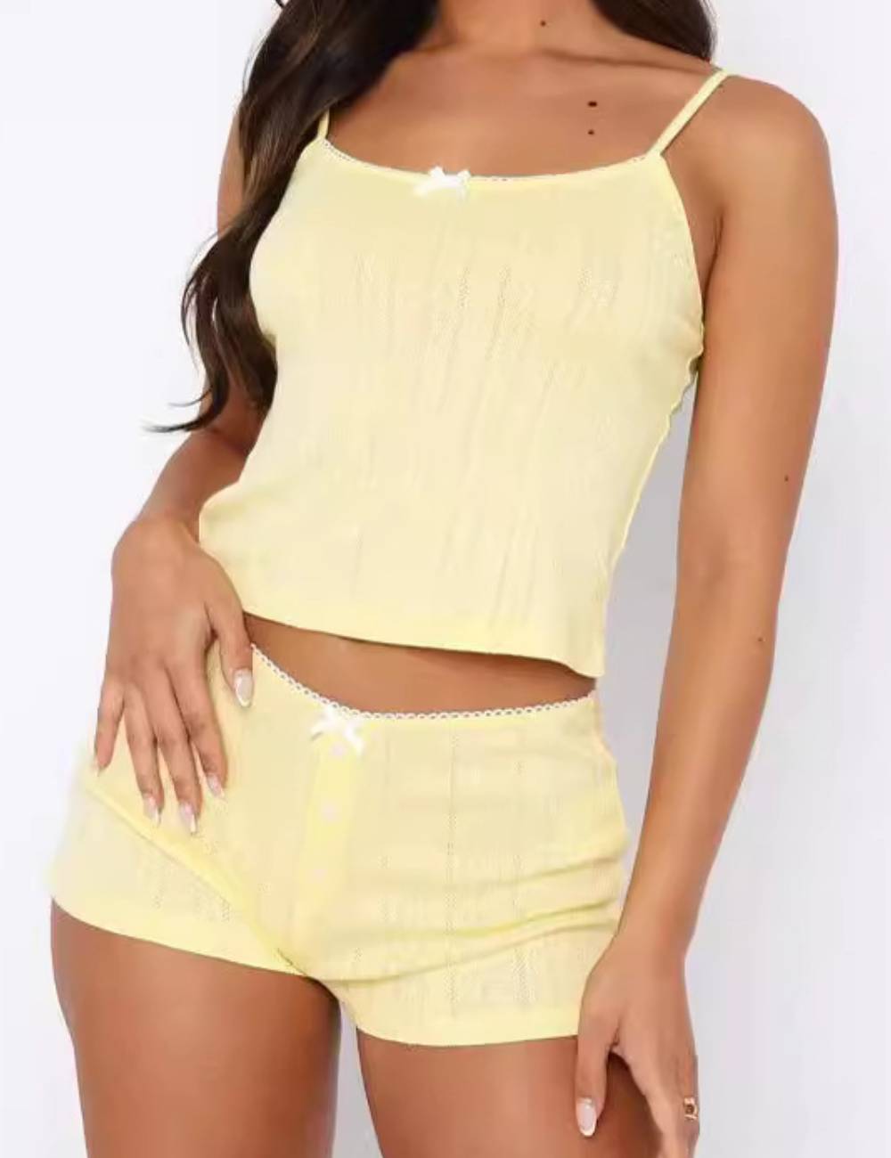 Ladies Basic Knit Cami Bowknot Top & Shorts Set SKST51296