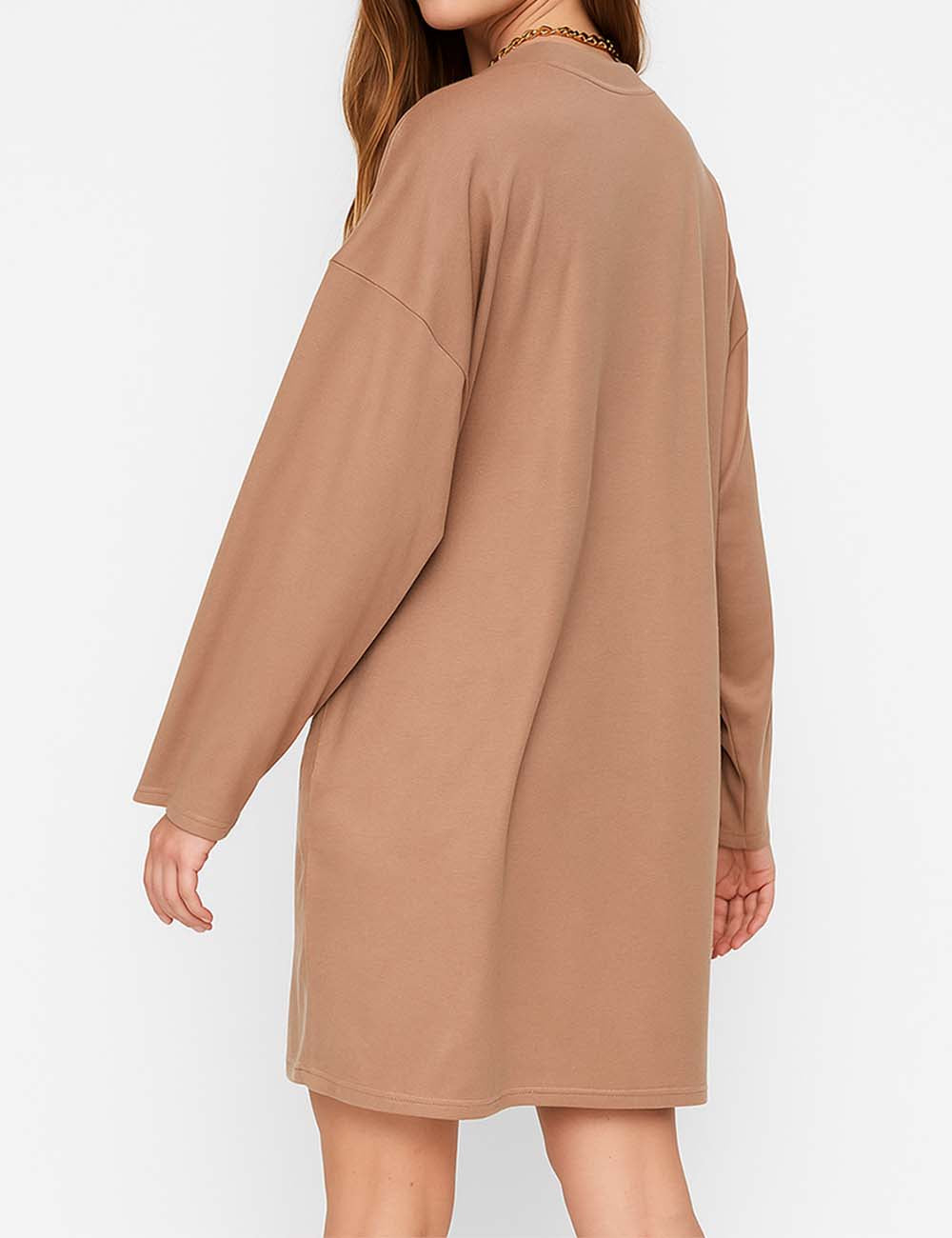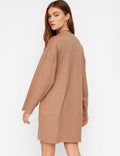 Ladies Basic Round Neck Long Sleeves Mini Dress