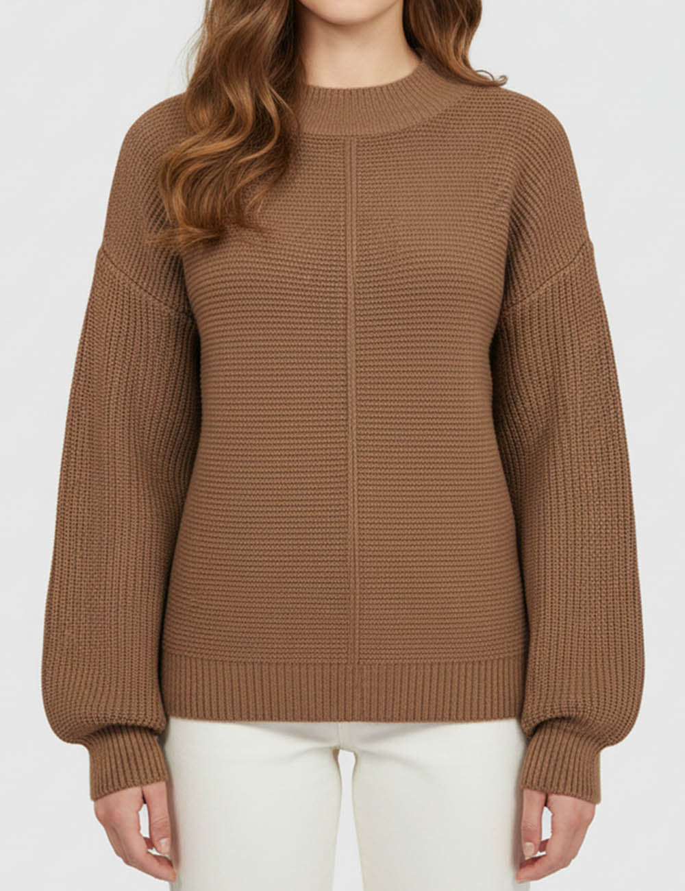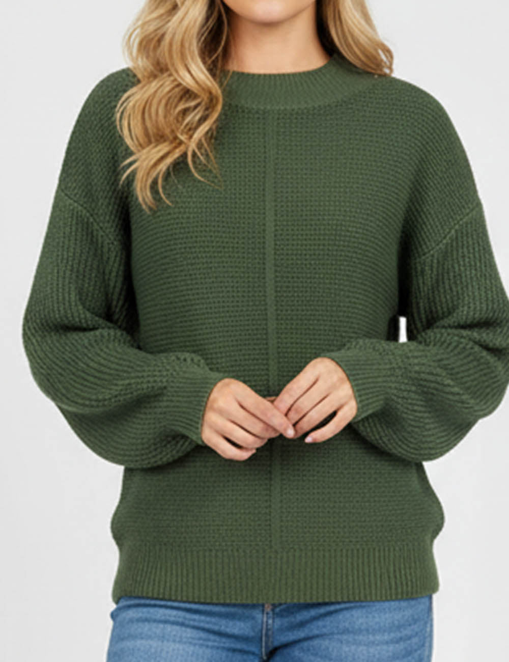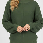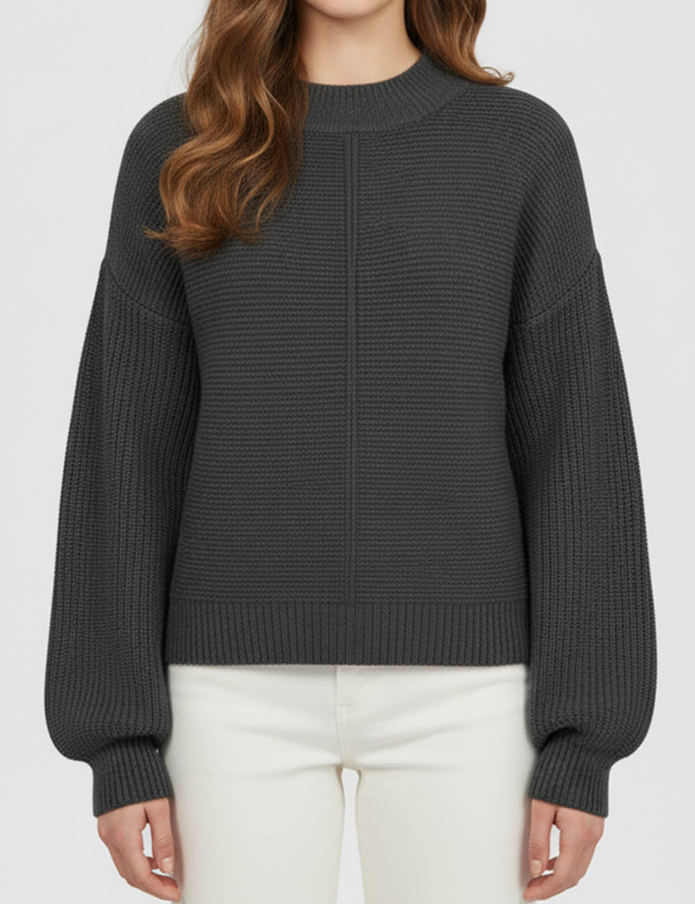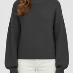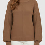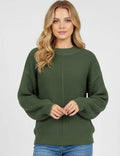 Ladies Basic Seam Front Round Neck Long Sleeves Sweater