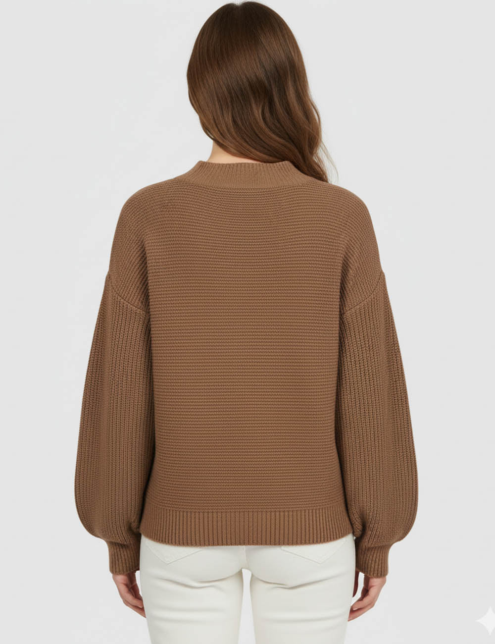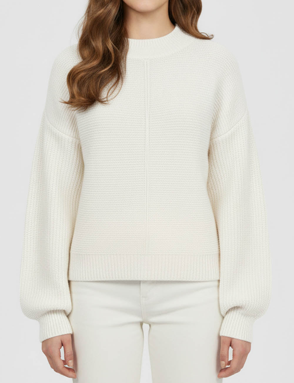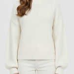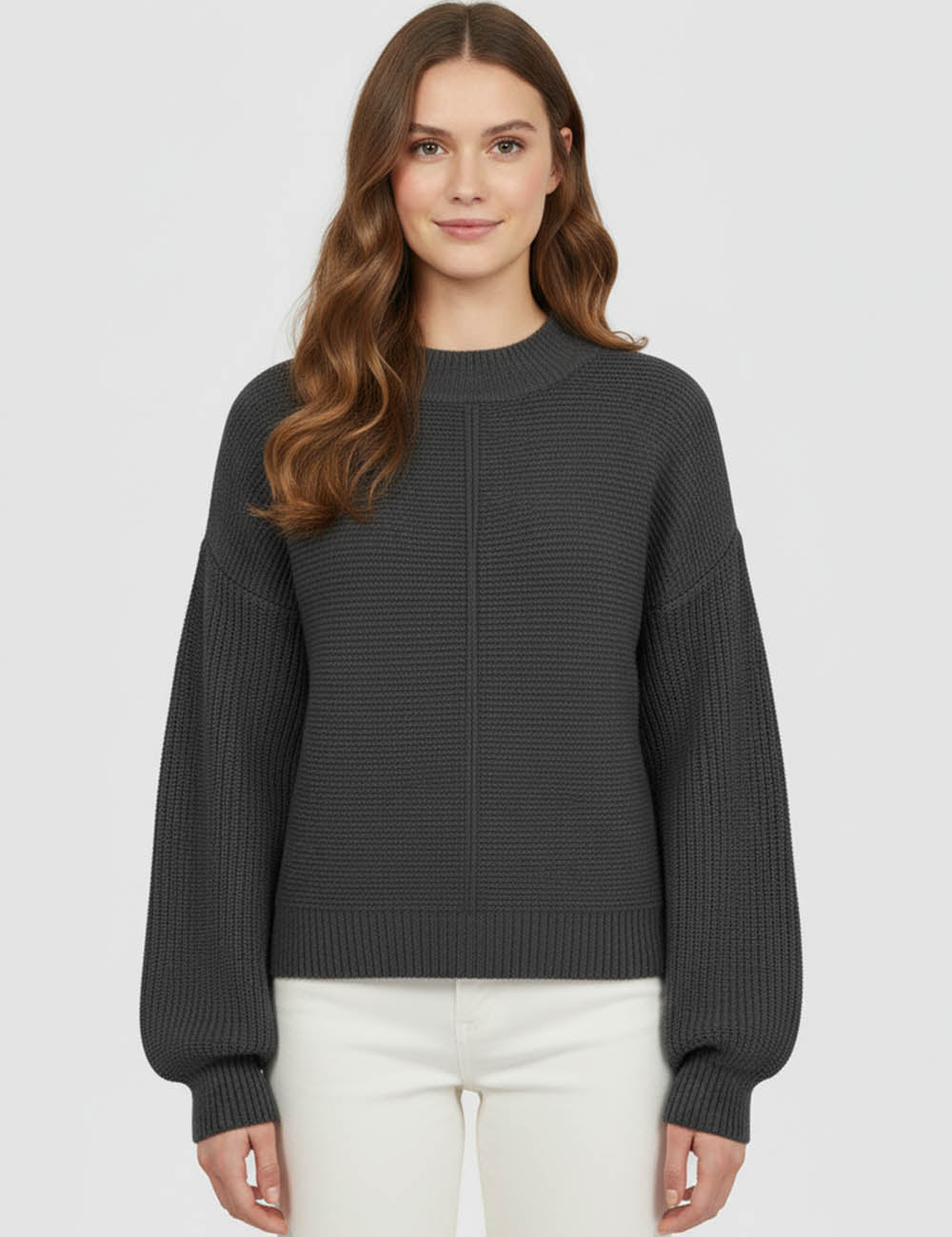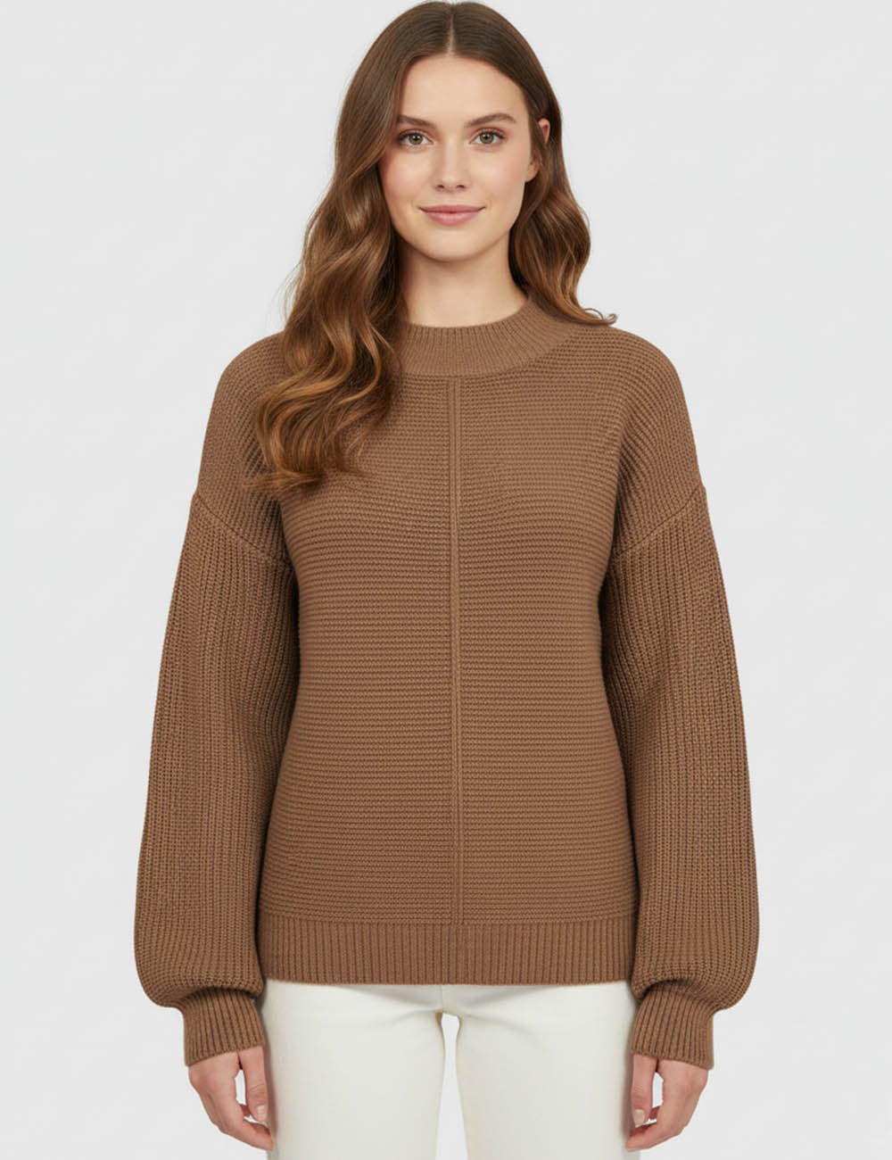 Ladies Basic Seam Front Round Neck Long Sleeves Sweater
