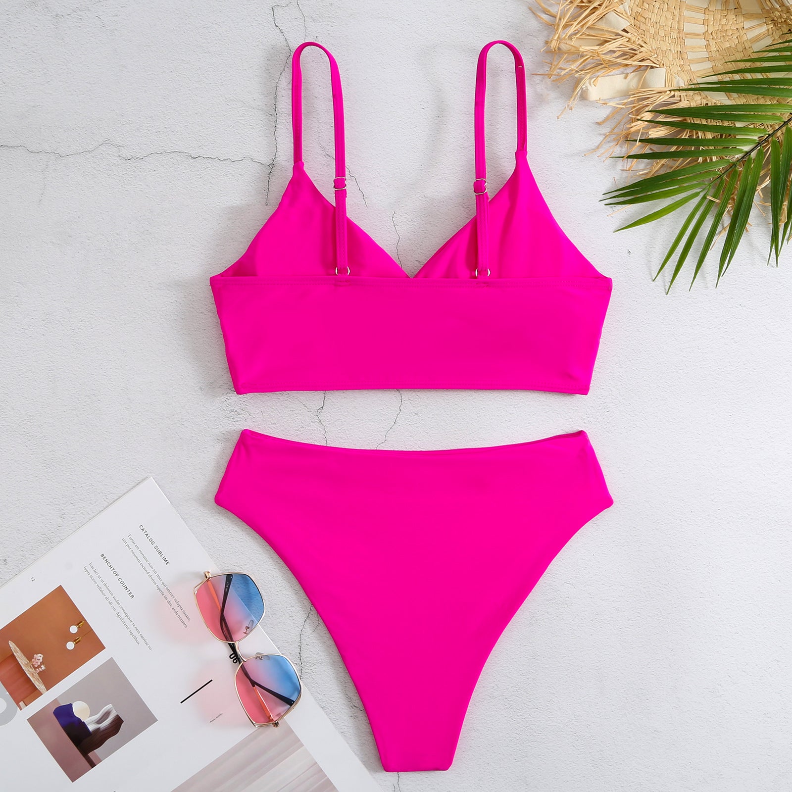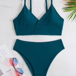 Ladies Basic Solid Color Two Shoulder Bikini Set SKSW40124