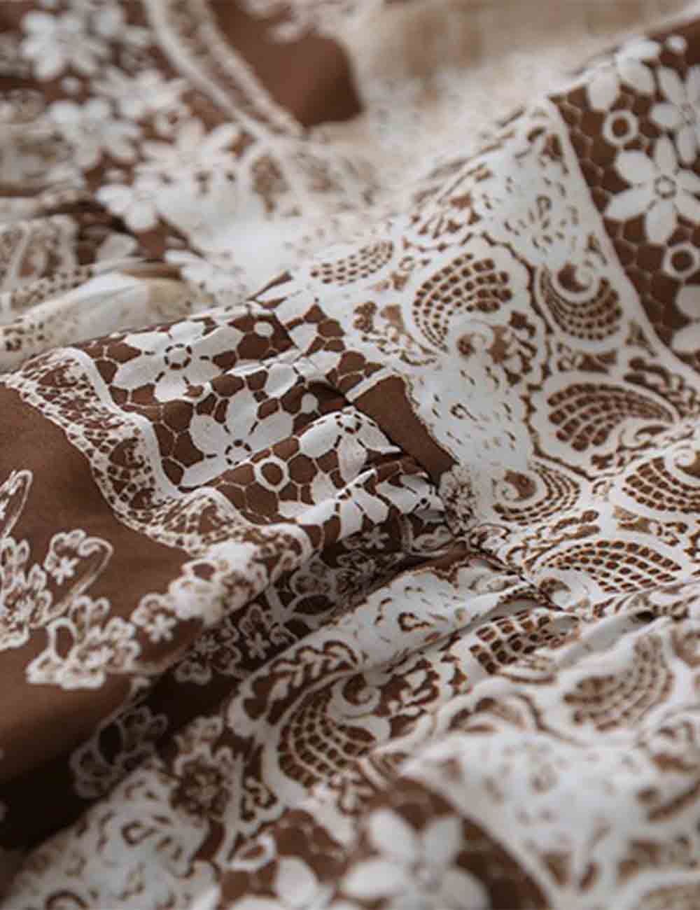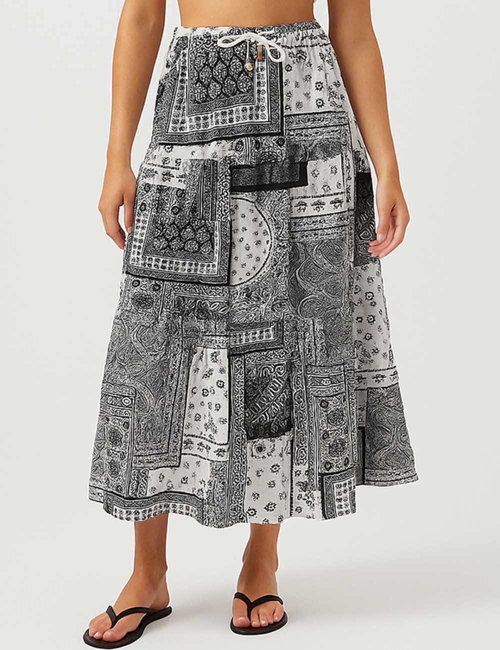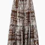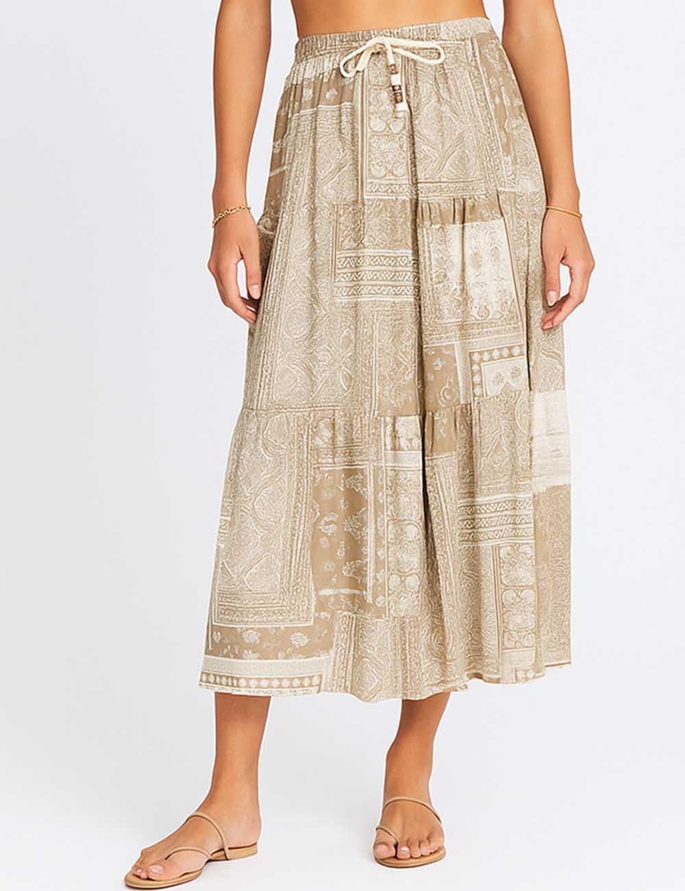 Ladies Boho Abstract Print String Tie Tiered Midi Skirt