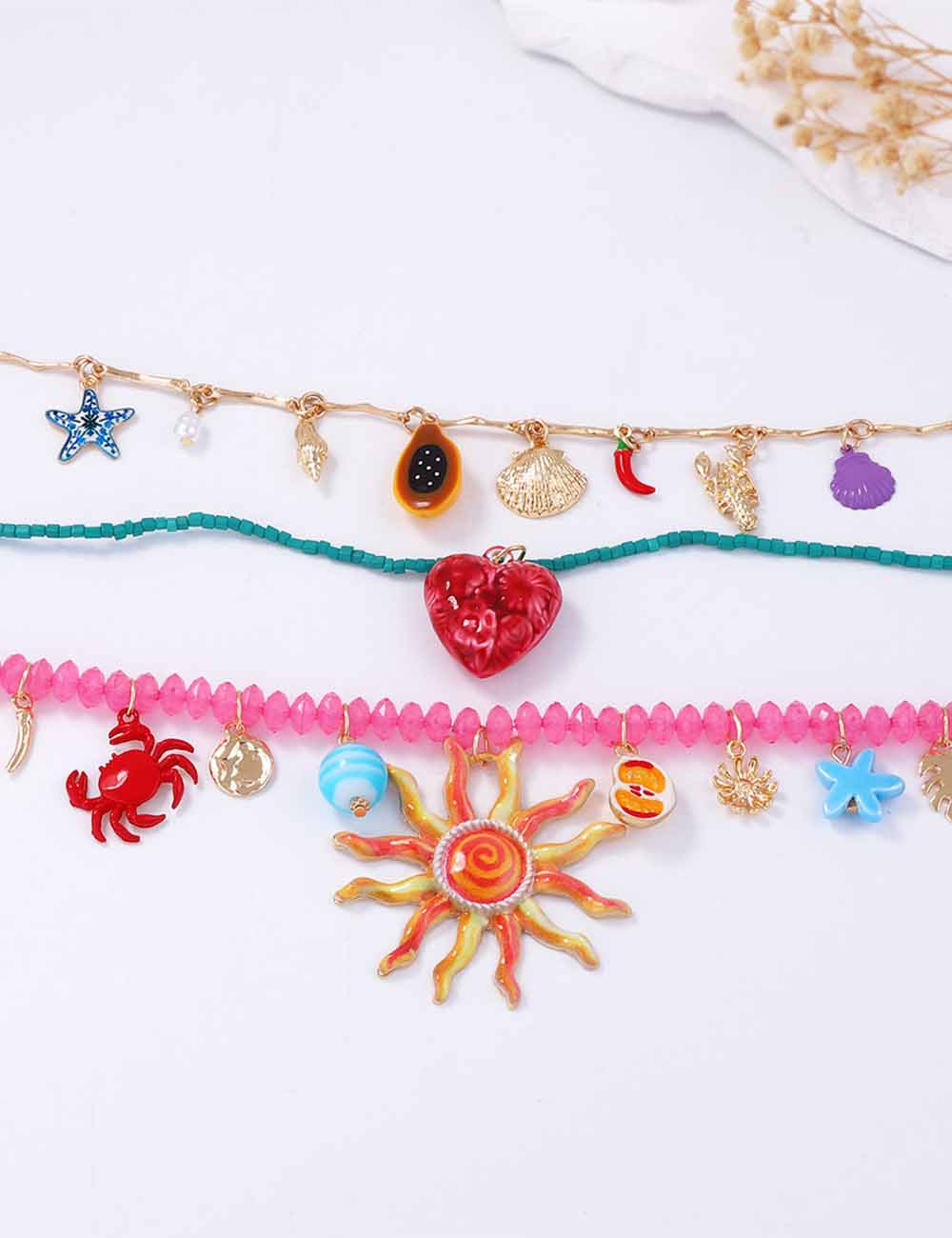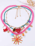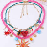Ladies Boho Colorful 3PCS Layer Sun Face Pendant Necklace