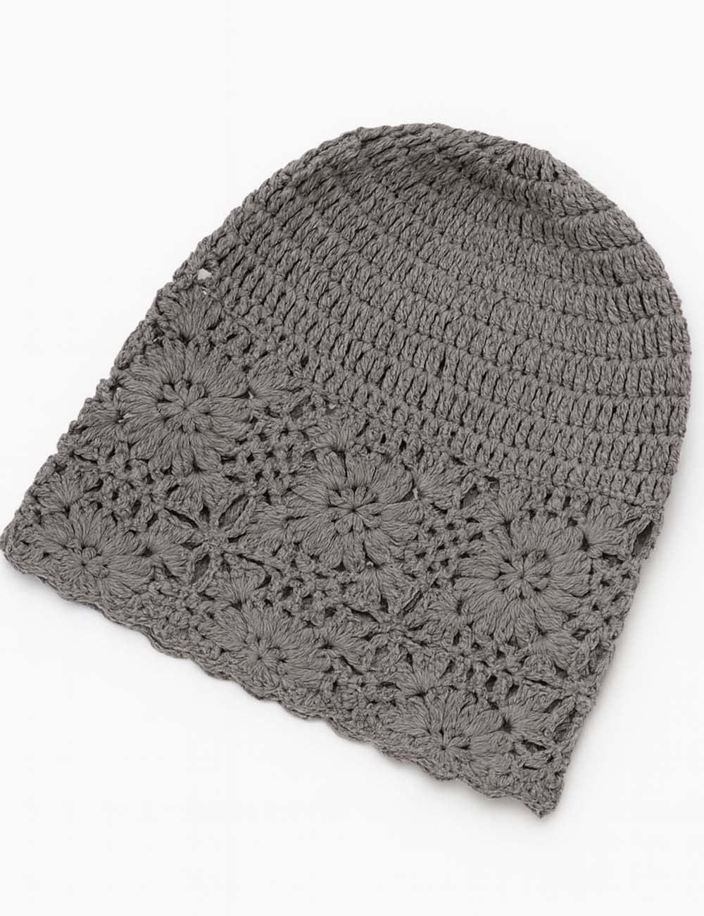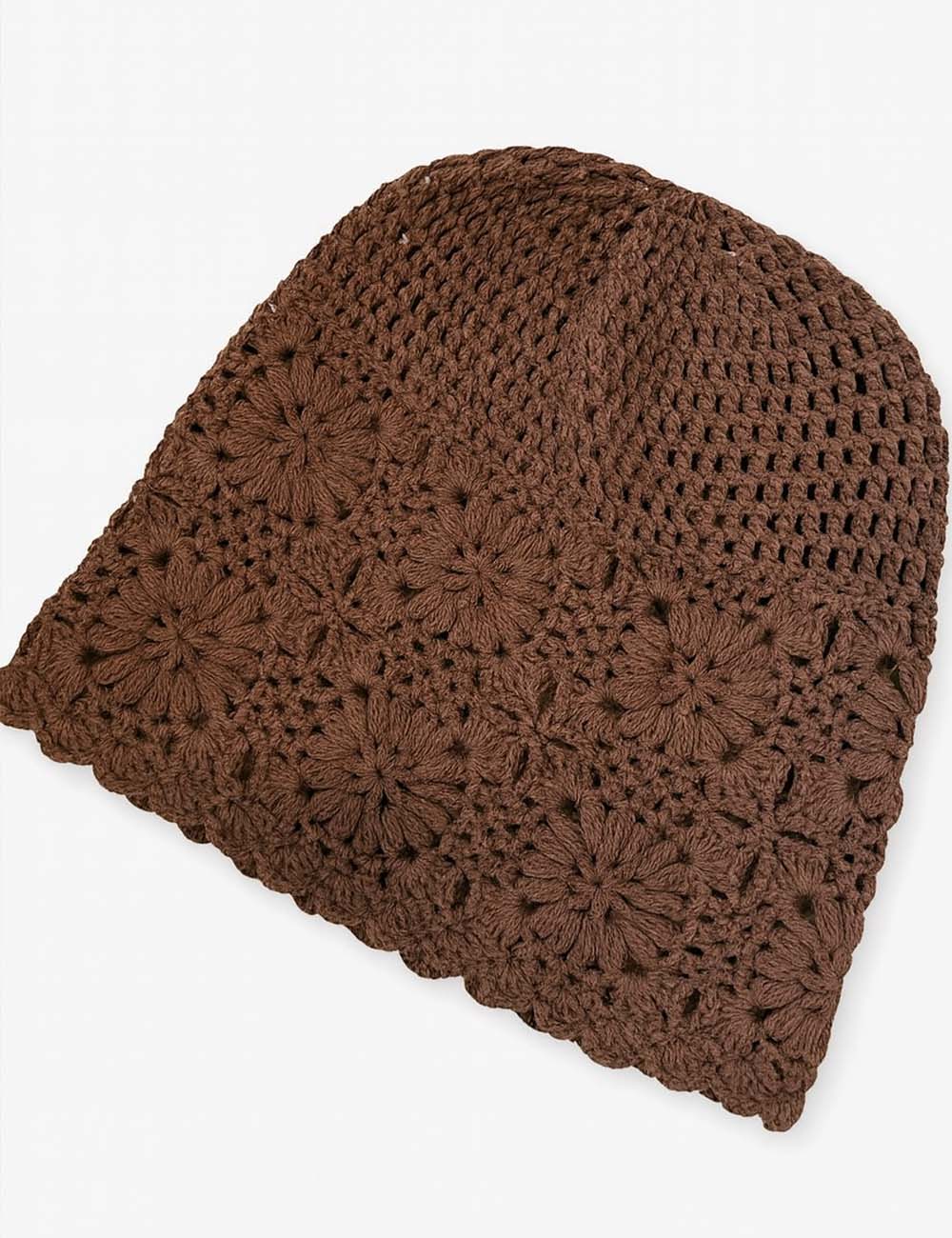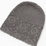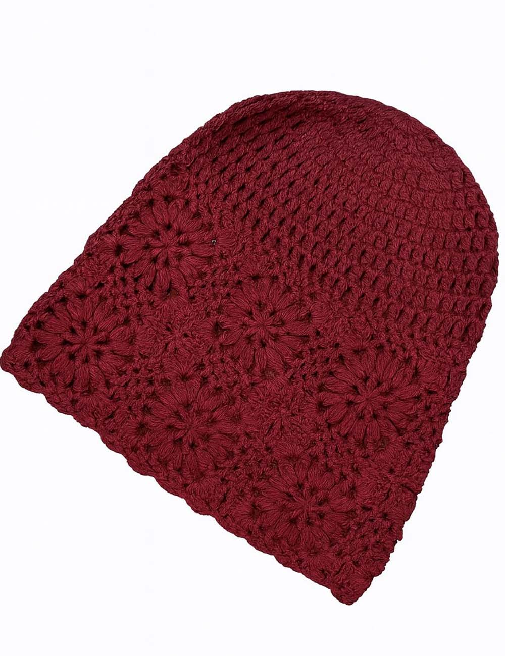 Ladies Boho Crochet Knit Floral Hollow Out Skull Cap Hat