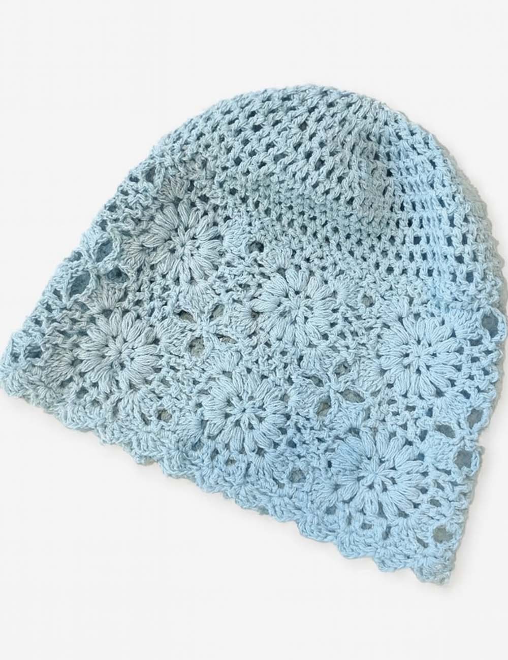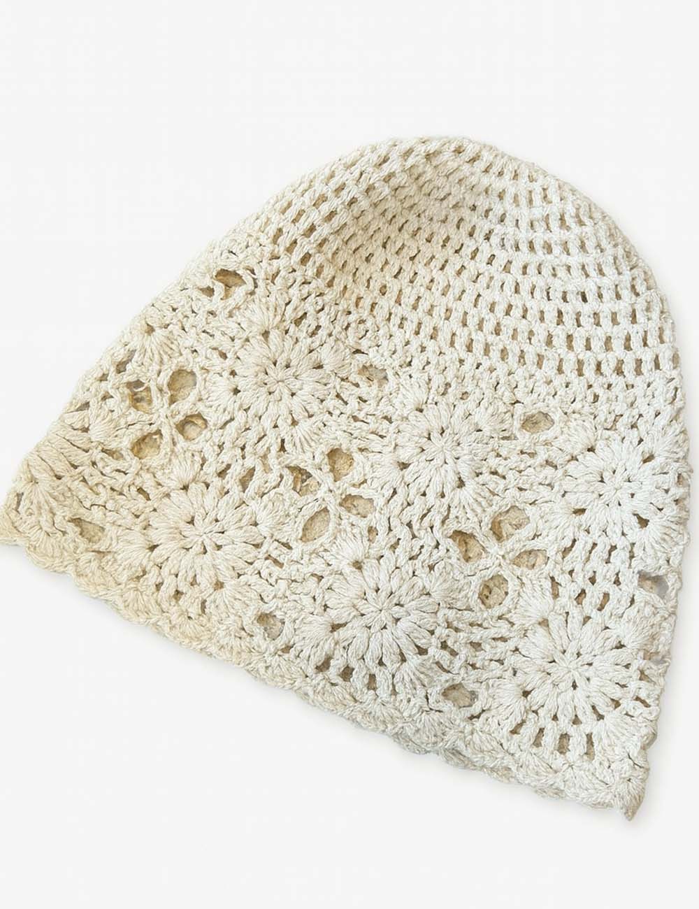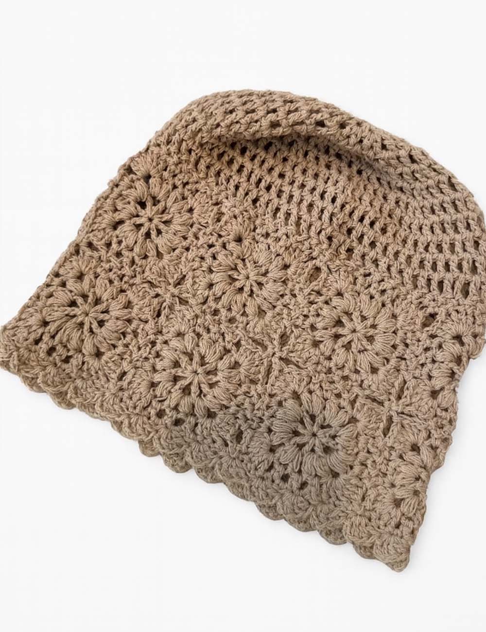 Ladies Boho Crochet Knit Floral Hollow Out Skull Cap Hat