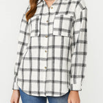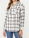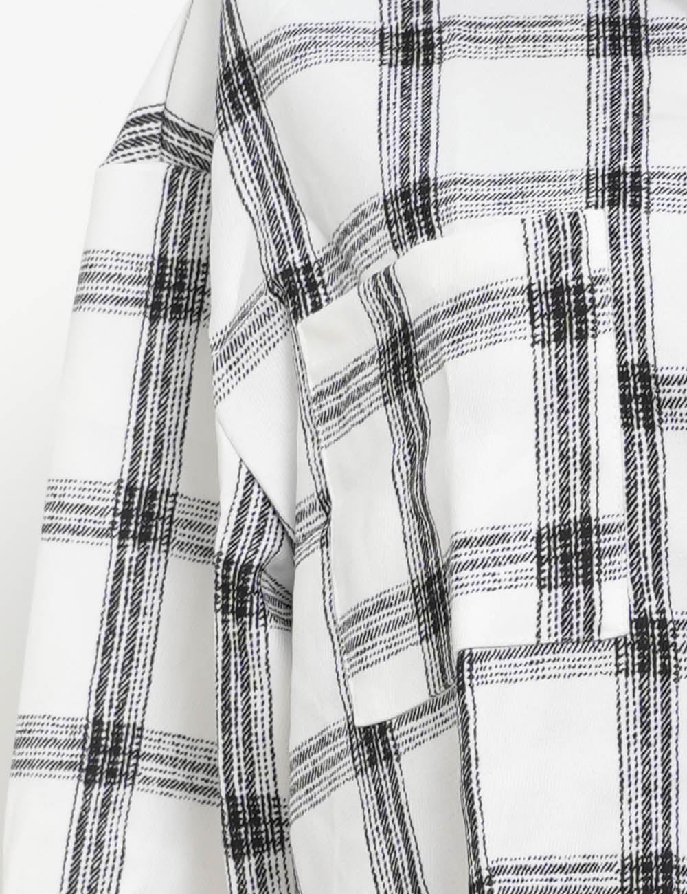 Ladies Botton Open Turndown Collar Plaid Shirt 9965