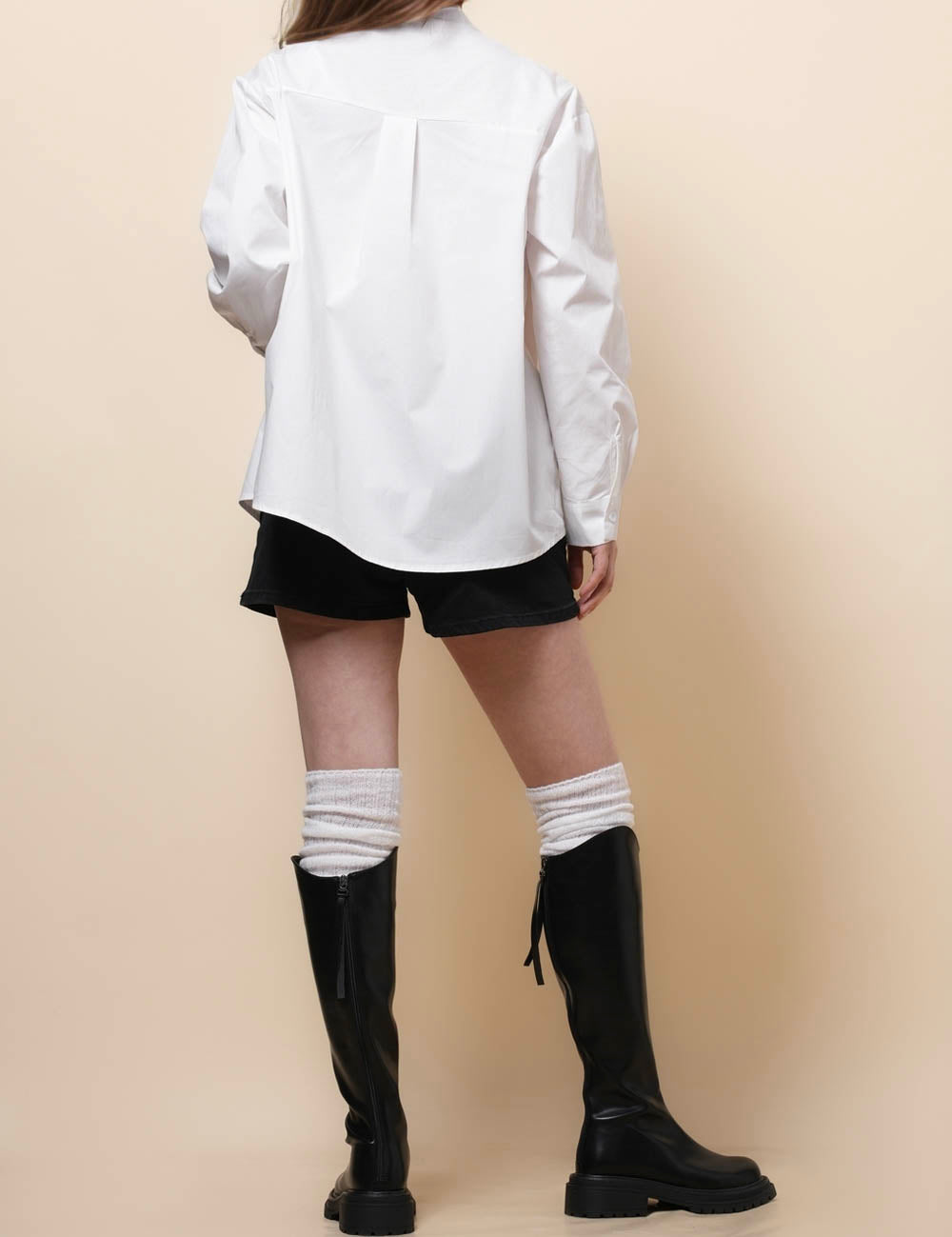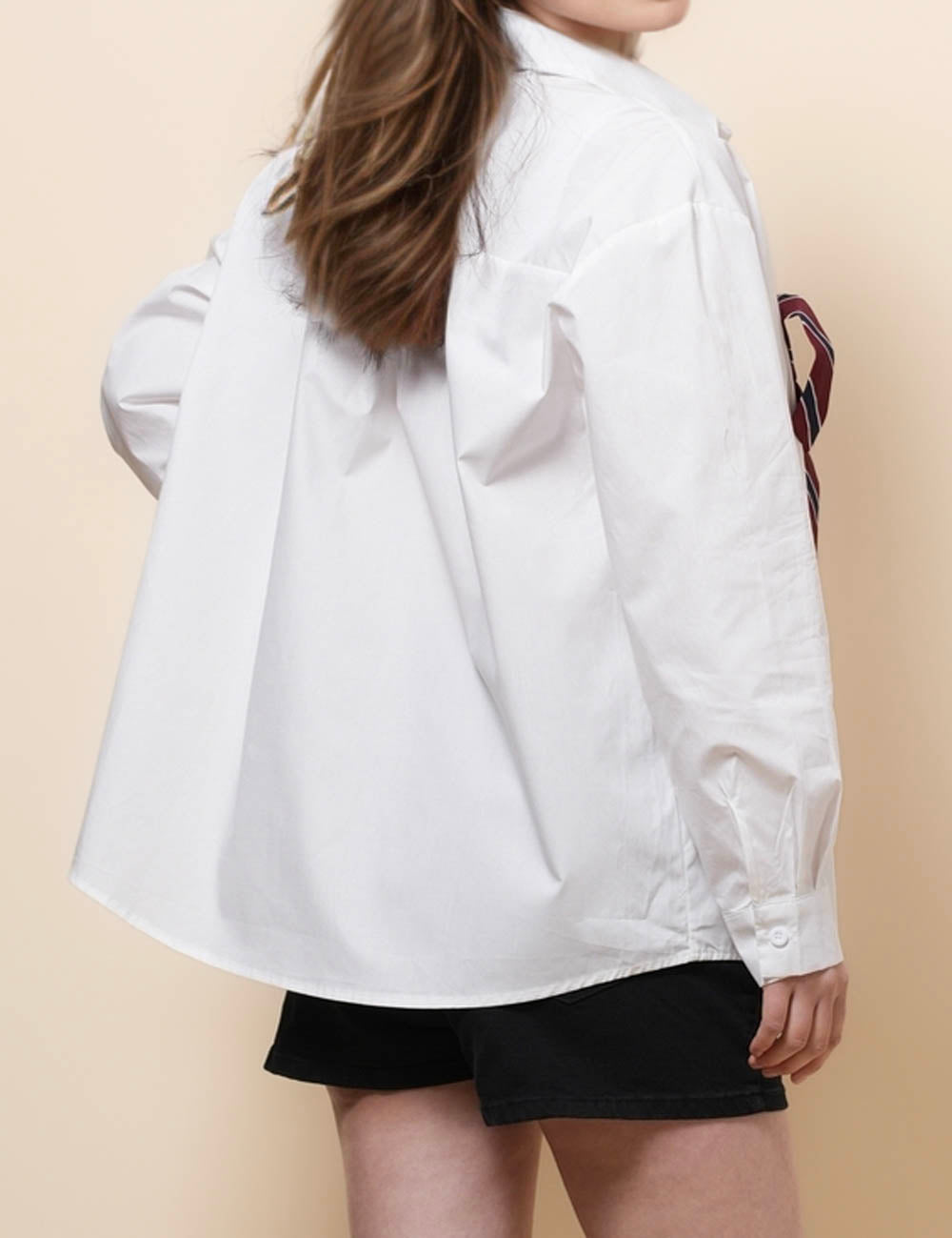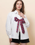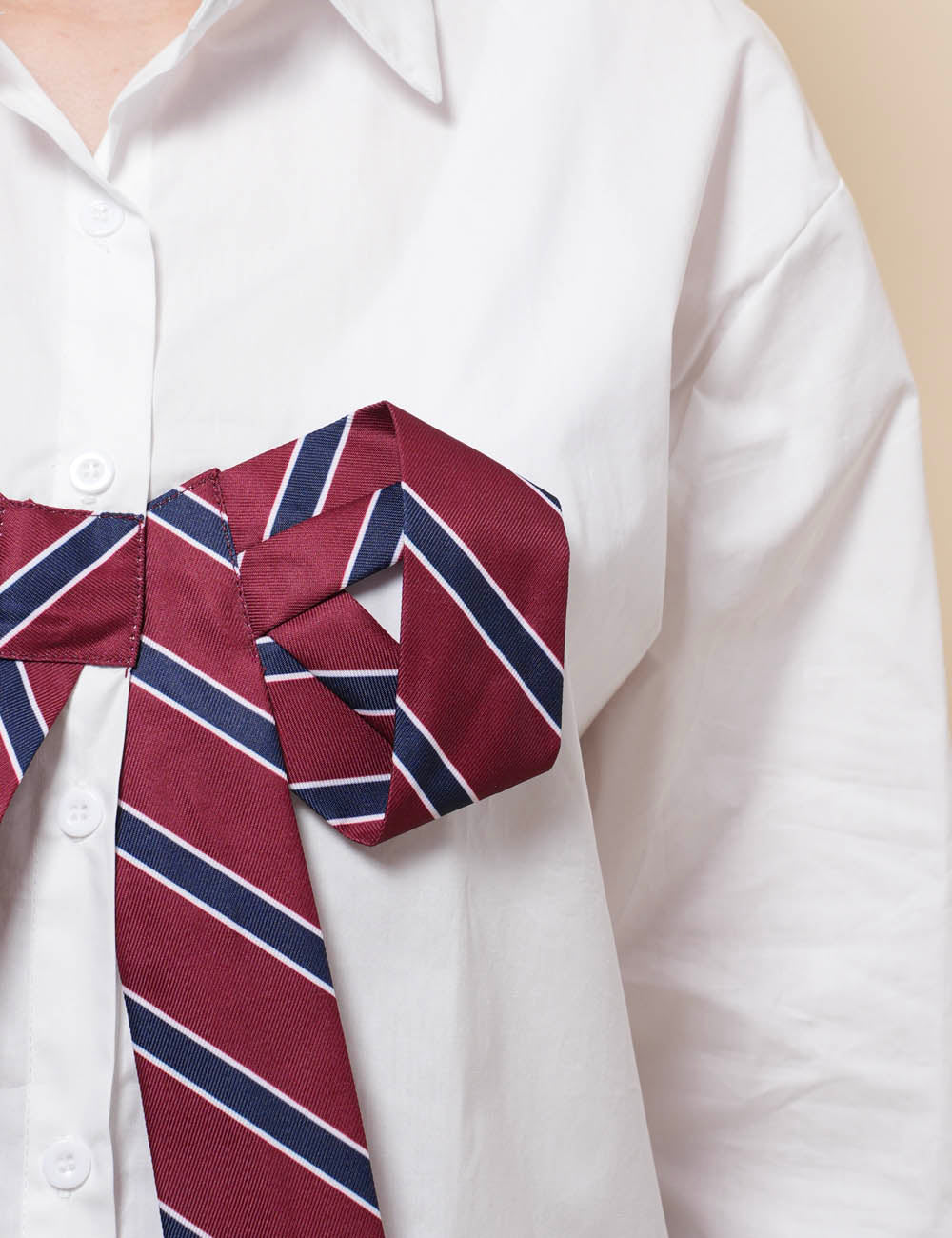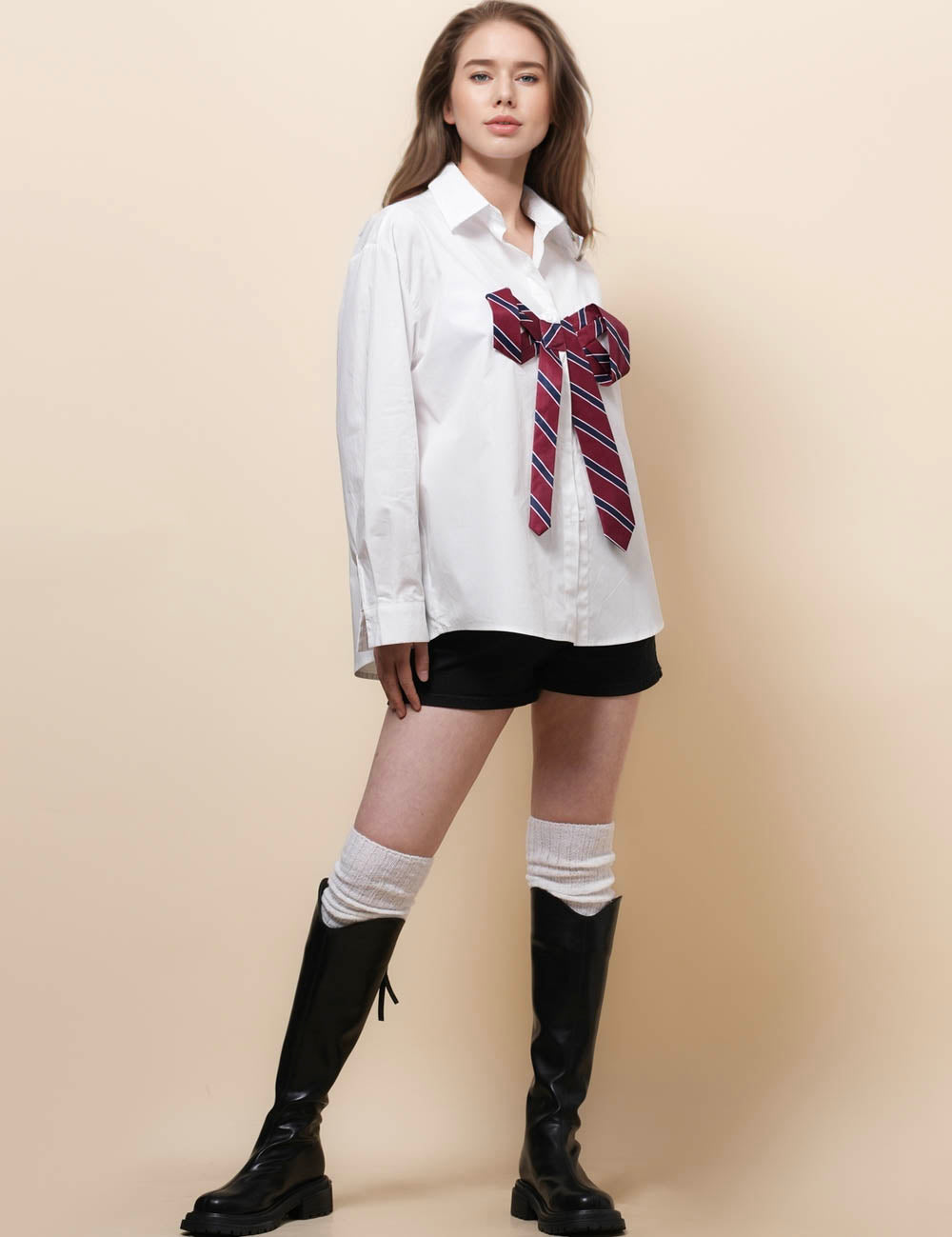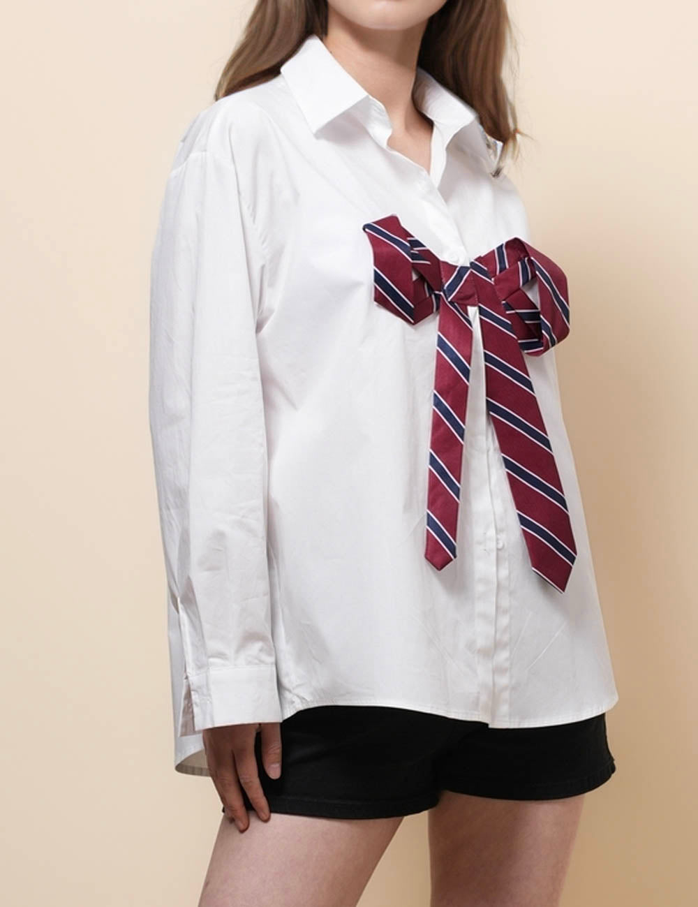 Ladies Bowknot Botton Down White Shirt SKT51072