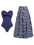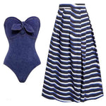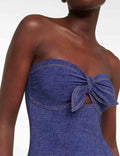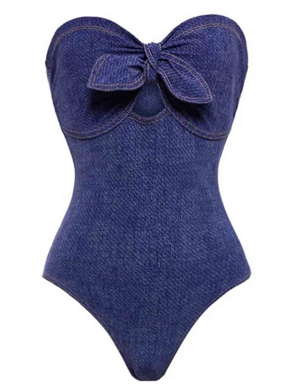 Ladies Bowknot Hollow Out Back Open One Piece Swimwear with Salong