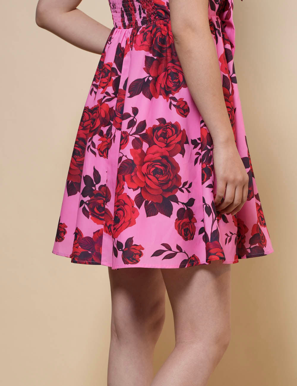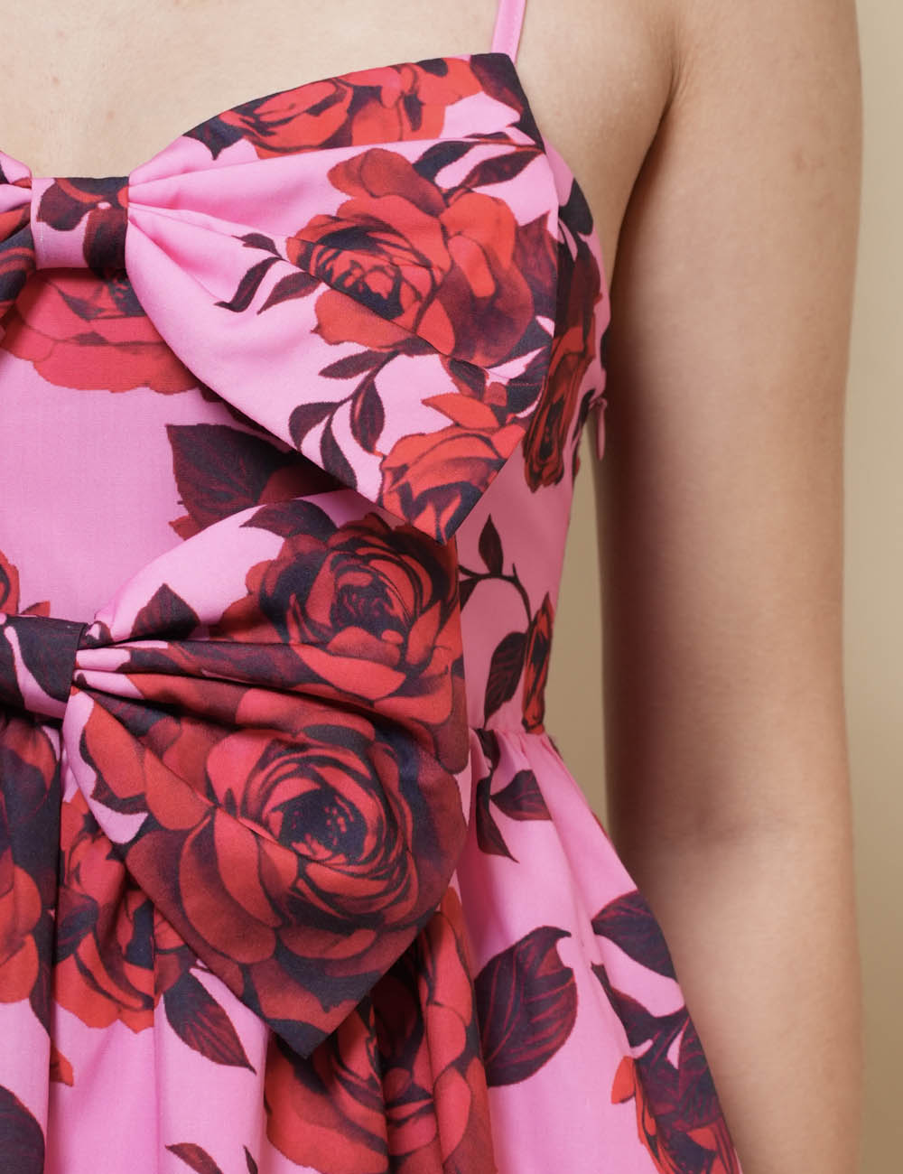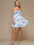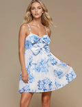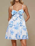 Ladies Bowknot String Shoulder Floral Mini Dress SKD50287