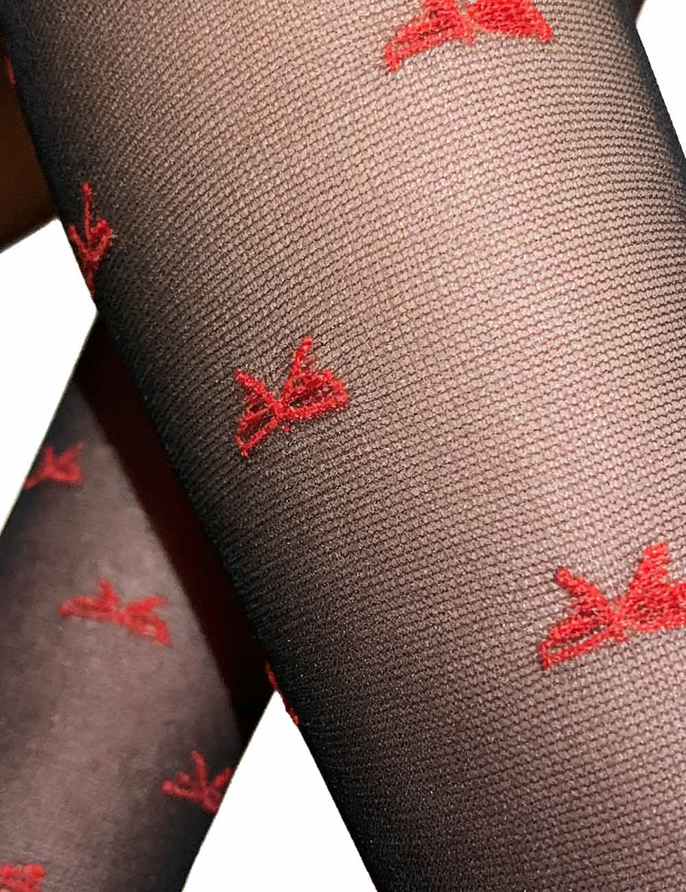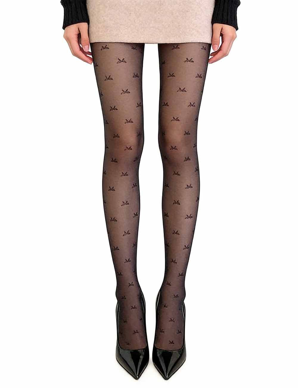 Ladies Butterfly Pattern See Sheer Non-Fleece Pantyhose
