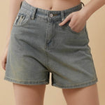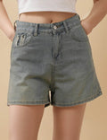 Ladies Button Closure Pocket Straight Leg Denim Shorts