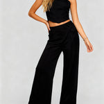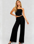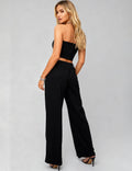 Ladies Button Front Corset Tube Top & Wide Leg Pants Set