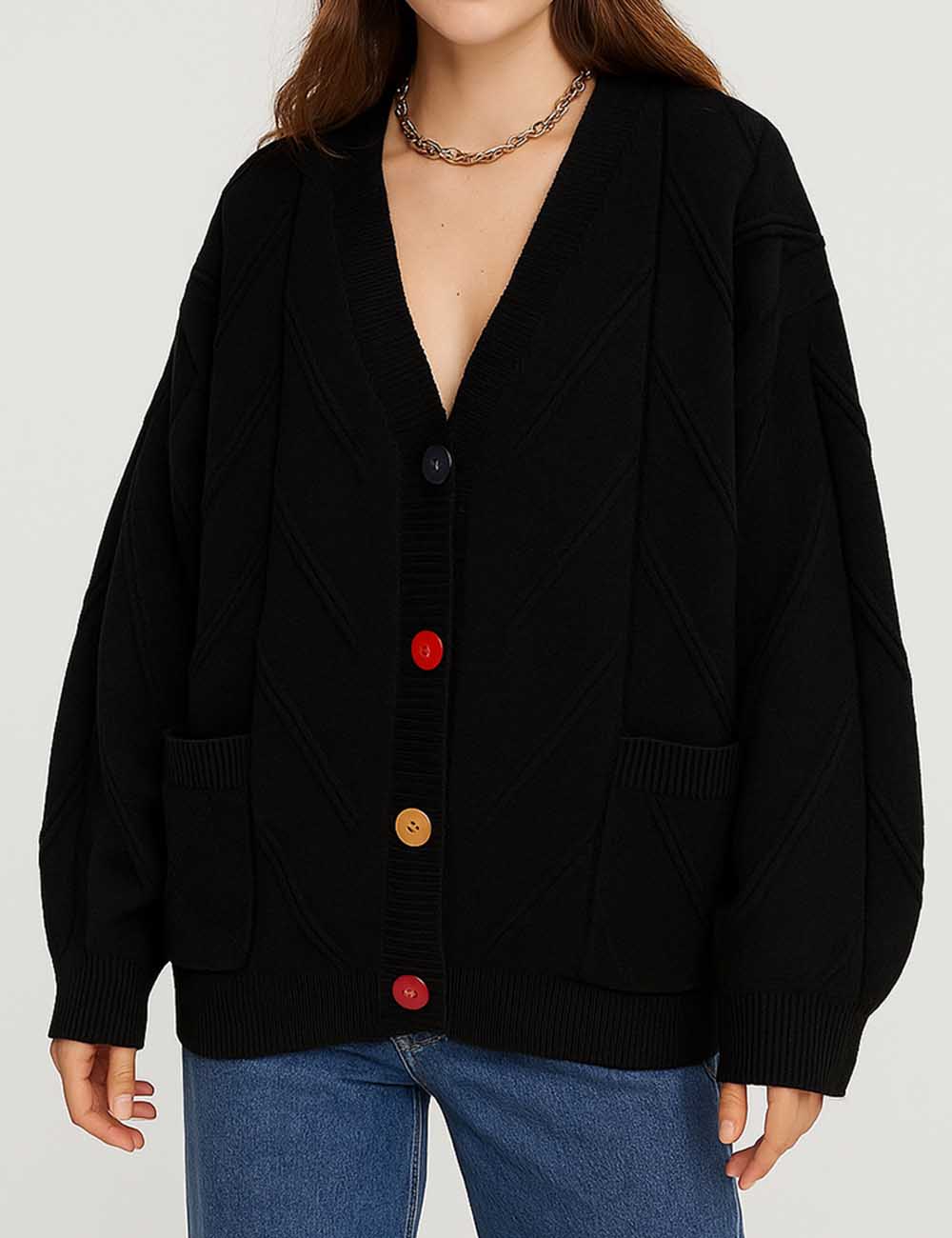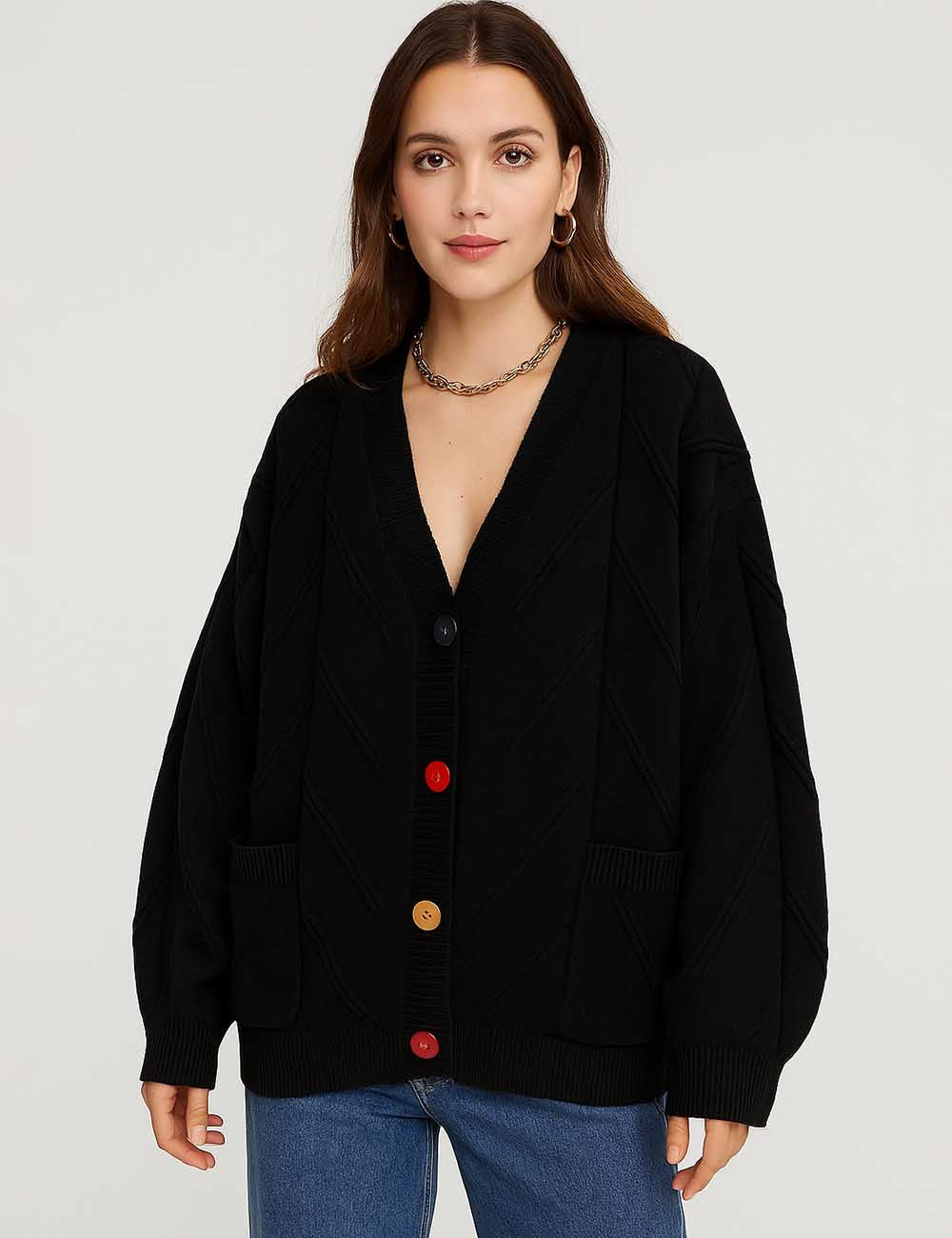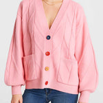 Ladies Cable Knit V-Neck Button Closure Sweater Cardigan