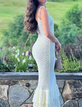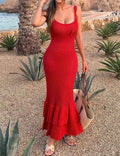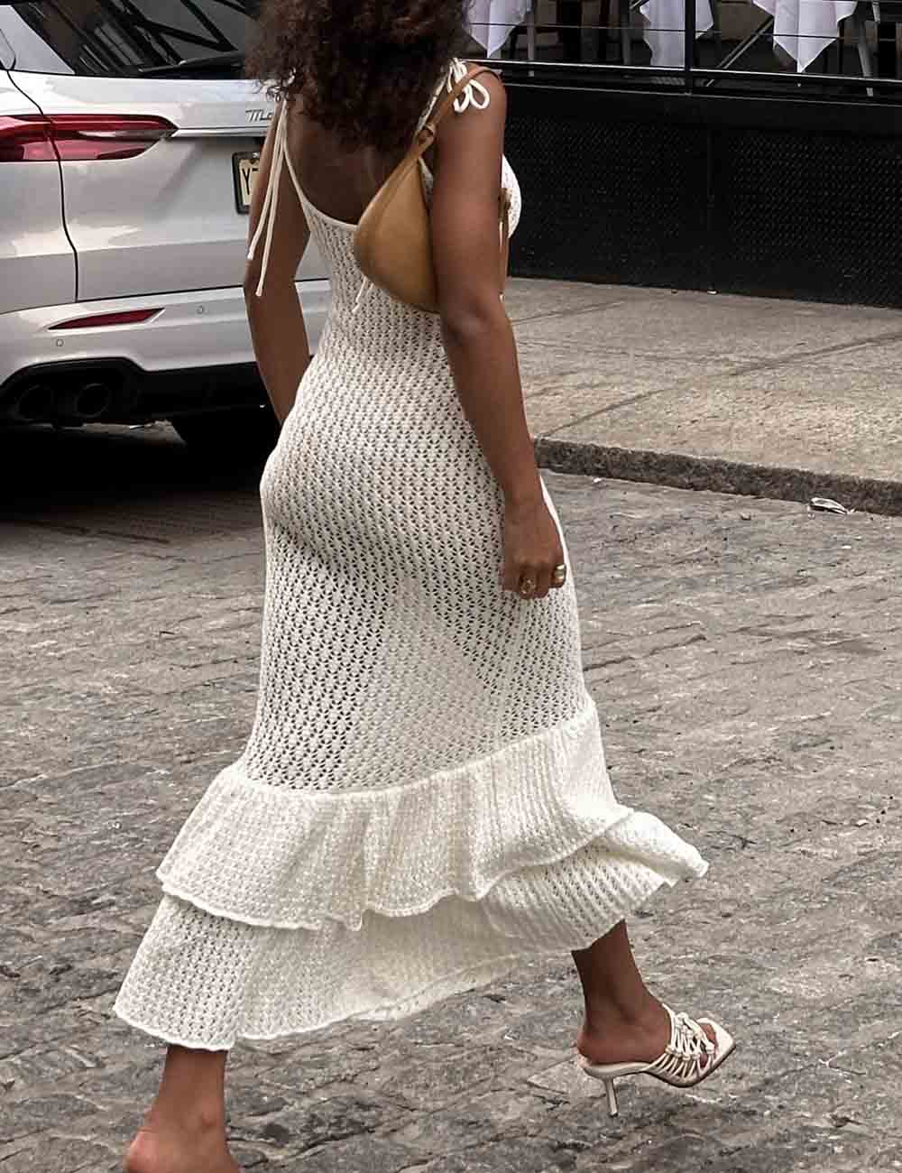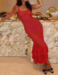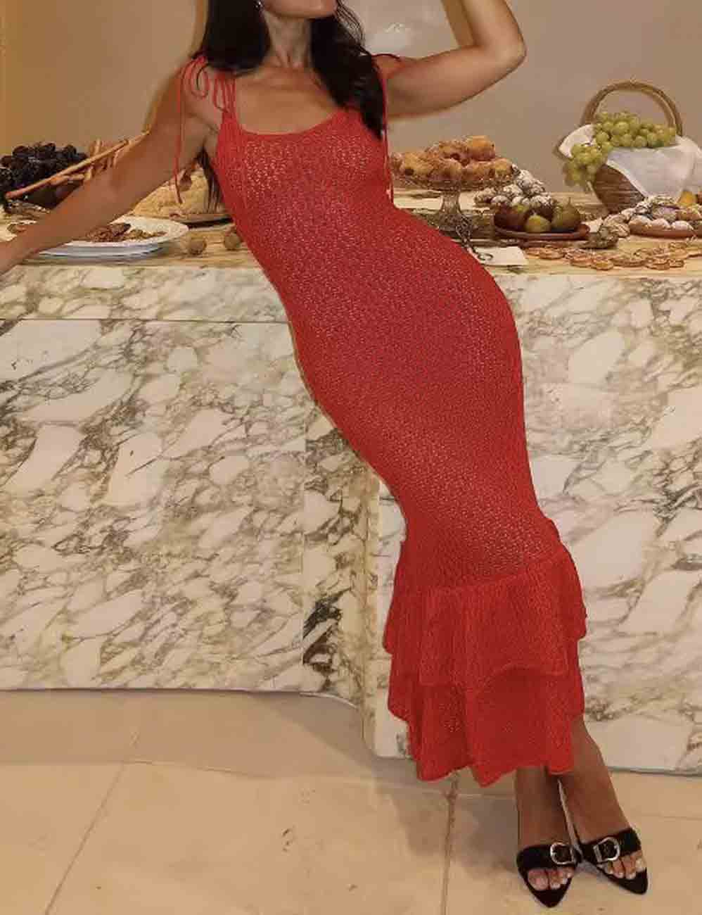 Ladies Cami Hollow Out Ruffle Hem Knit Midi Dress SKD50184