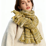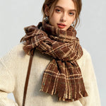 Ladies Checked Cozy Oblong Knit Tassel Scarf